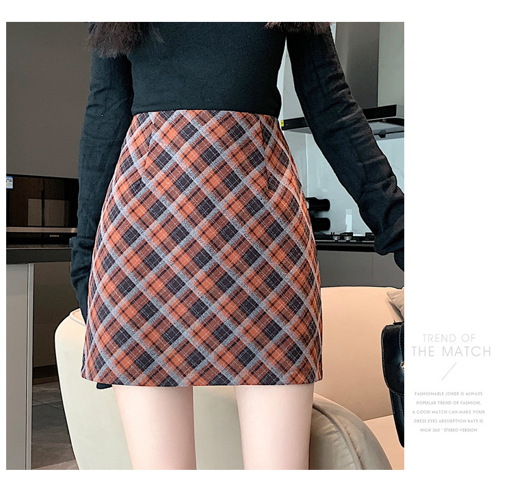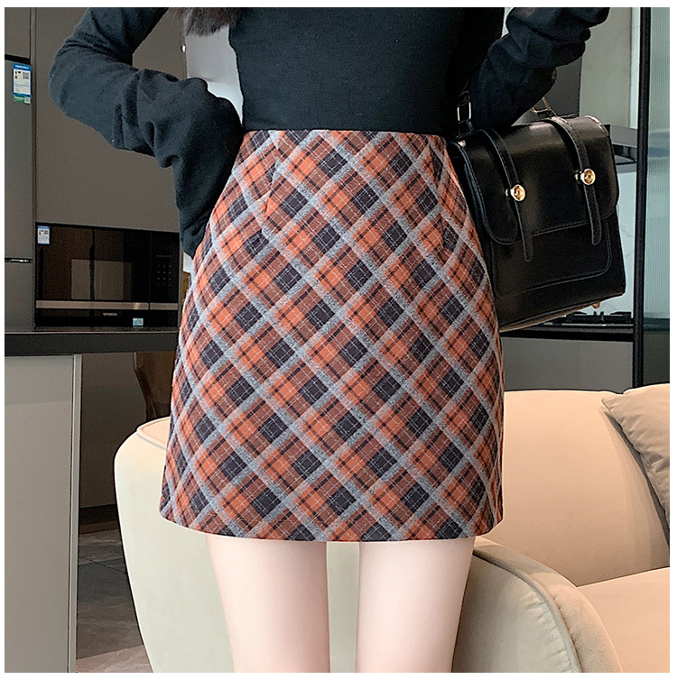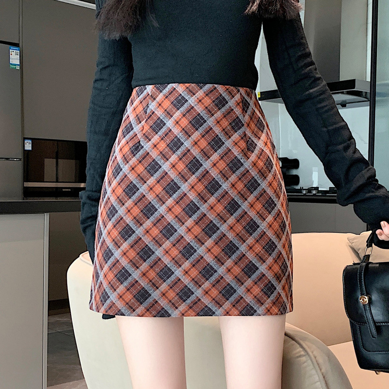 격자 무늬 스커트 여성의 가을과 겨울 2024 새로운 양모 레트로 높은 허리 슬리밍 A 라인 스커트 힙합 격자 무늬 스커트 스커트
