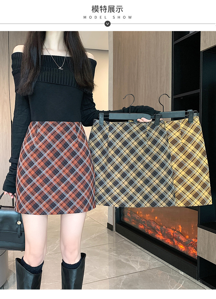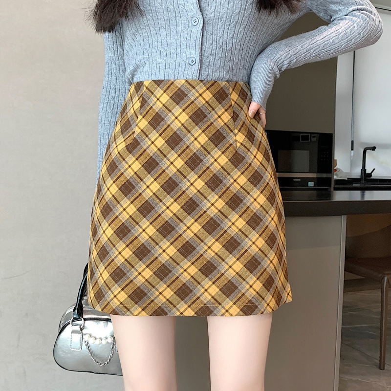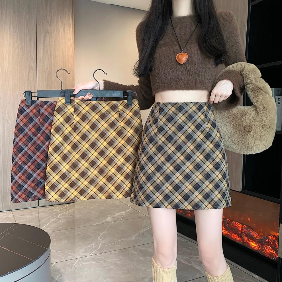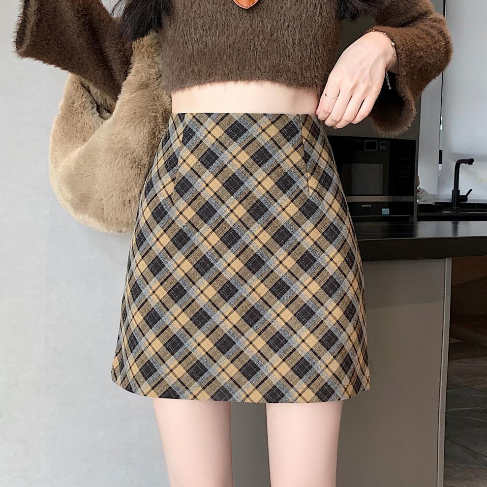 격자 무늬 스커트 여성의 가을과 겨울 2024 새로운 양모 레트로 높은 허리 슬리밍 A 라인 스커트 힙합 격자 무늬 스커트 스커트스토어 가기