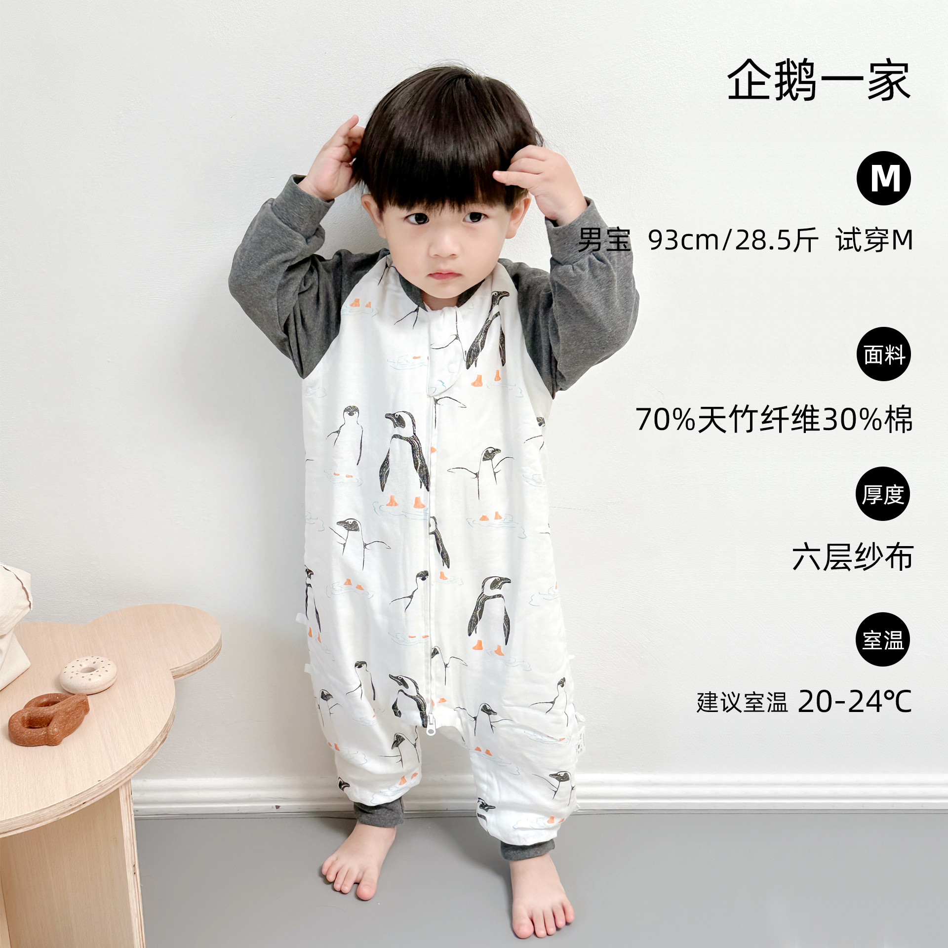 A급 아기 침낭 가을겨울용 6겹 대나무 면 거즈 아기 침낭 어린이용 다리 분리형 발차기 방지 이불스토어 가기