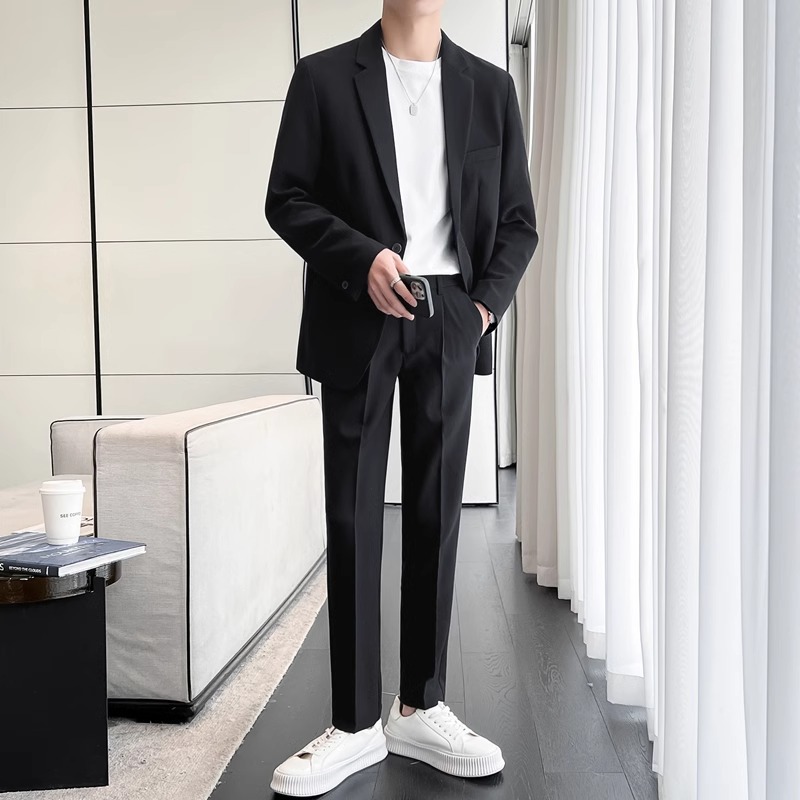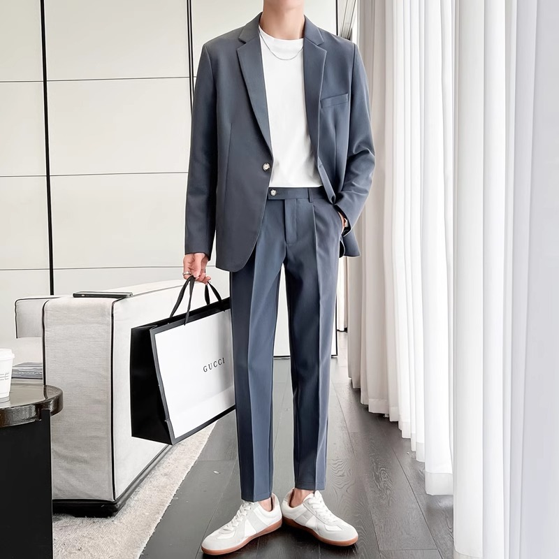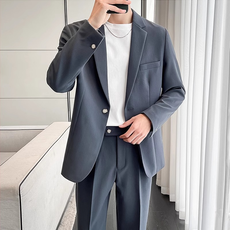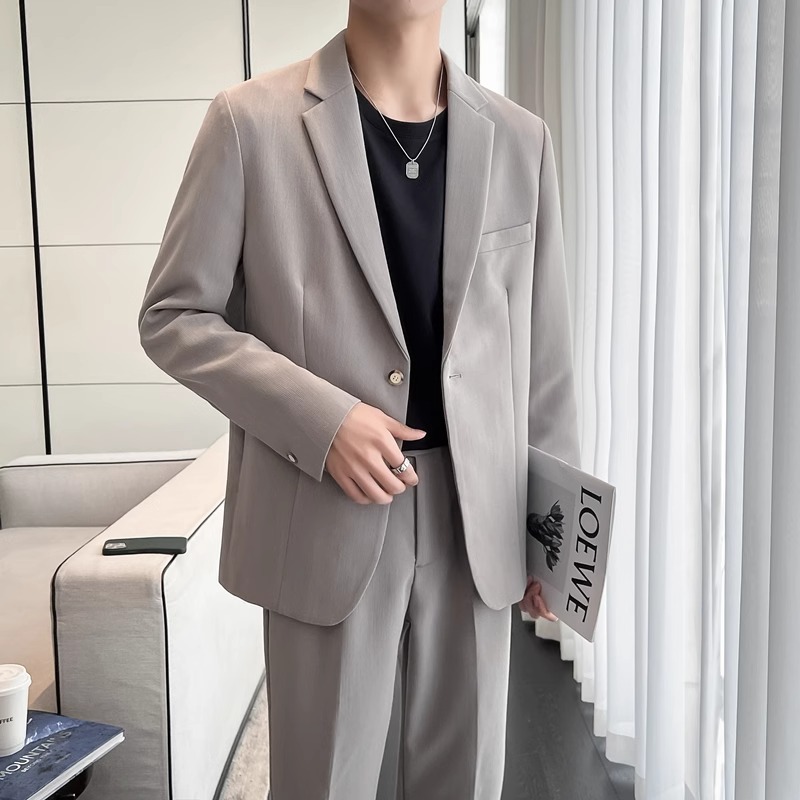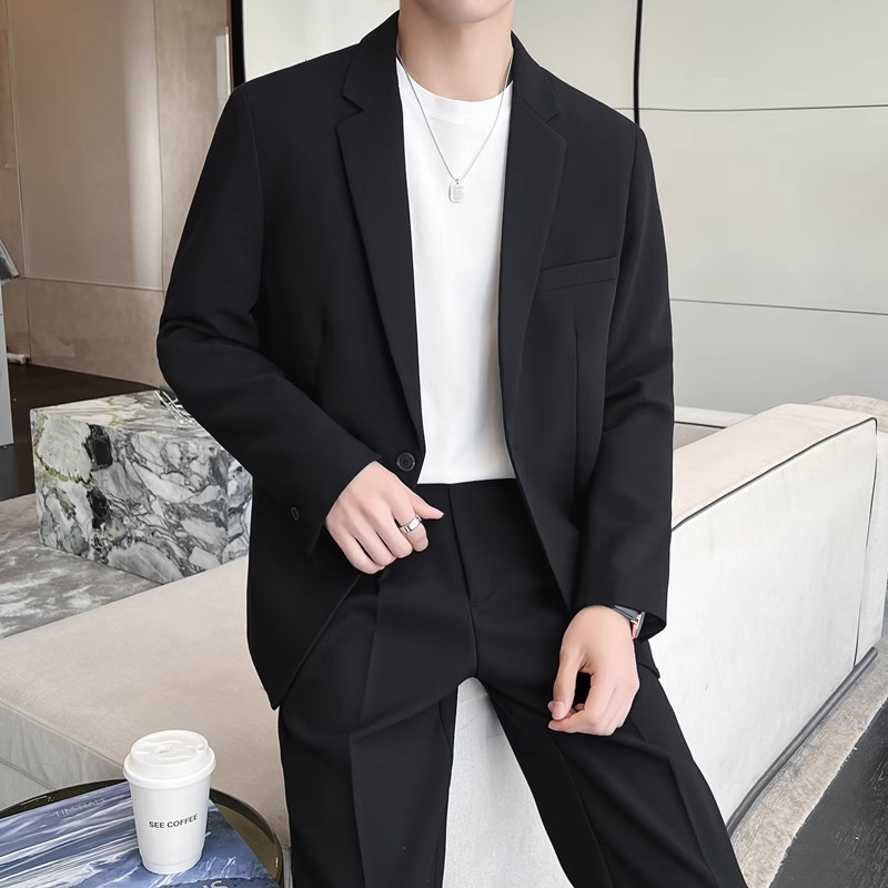 가을 솔리드 컬러 캐주얼 세트 남성용 다이퍼 재킷 유행 더피 핸섬 느슨한 세트 슬림 핏 바지스토어 가기