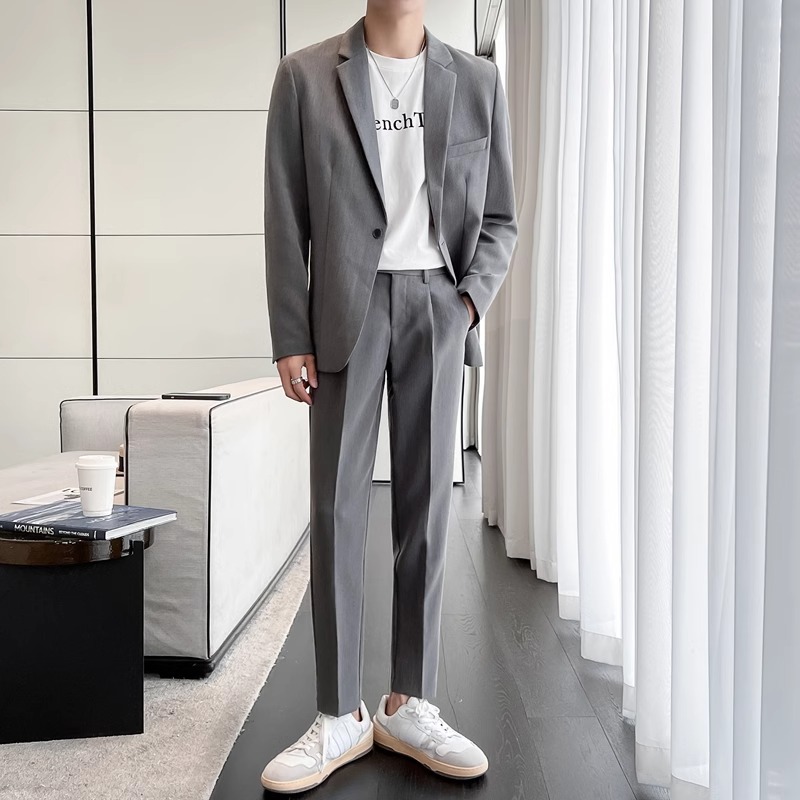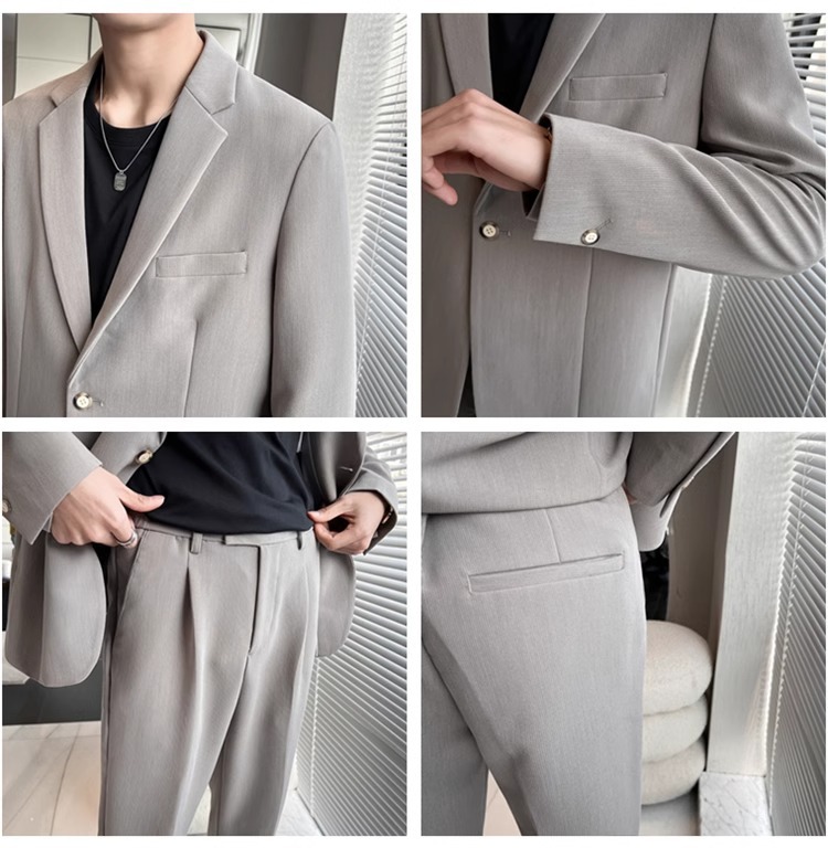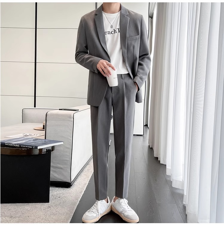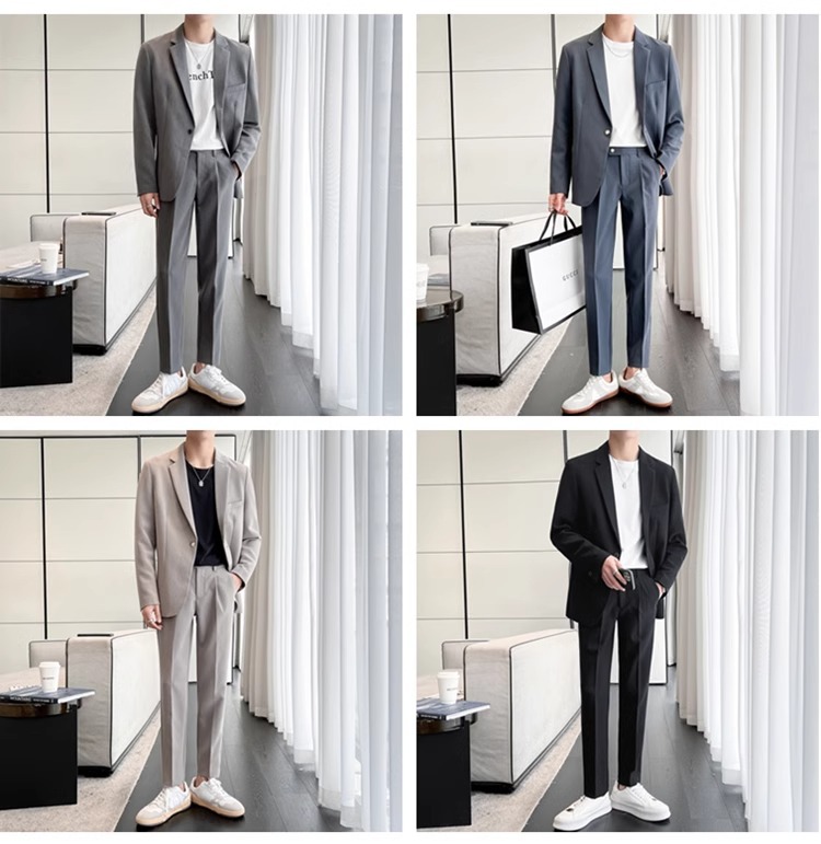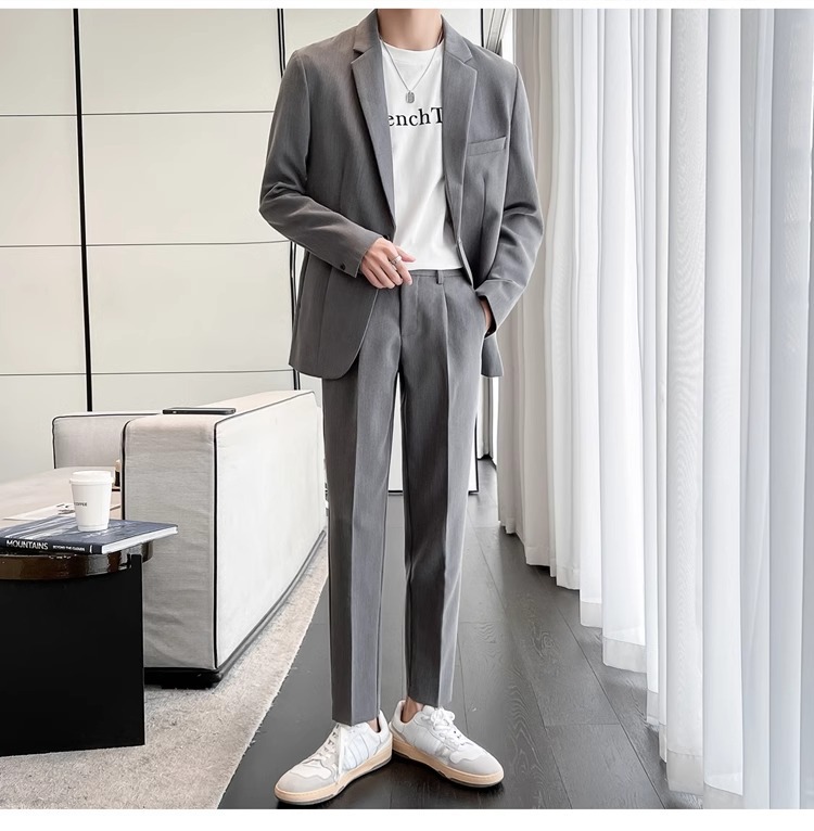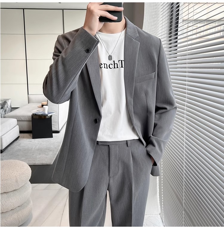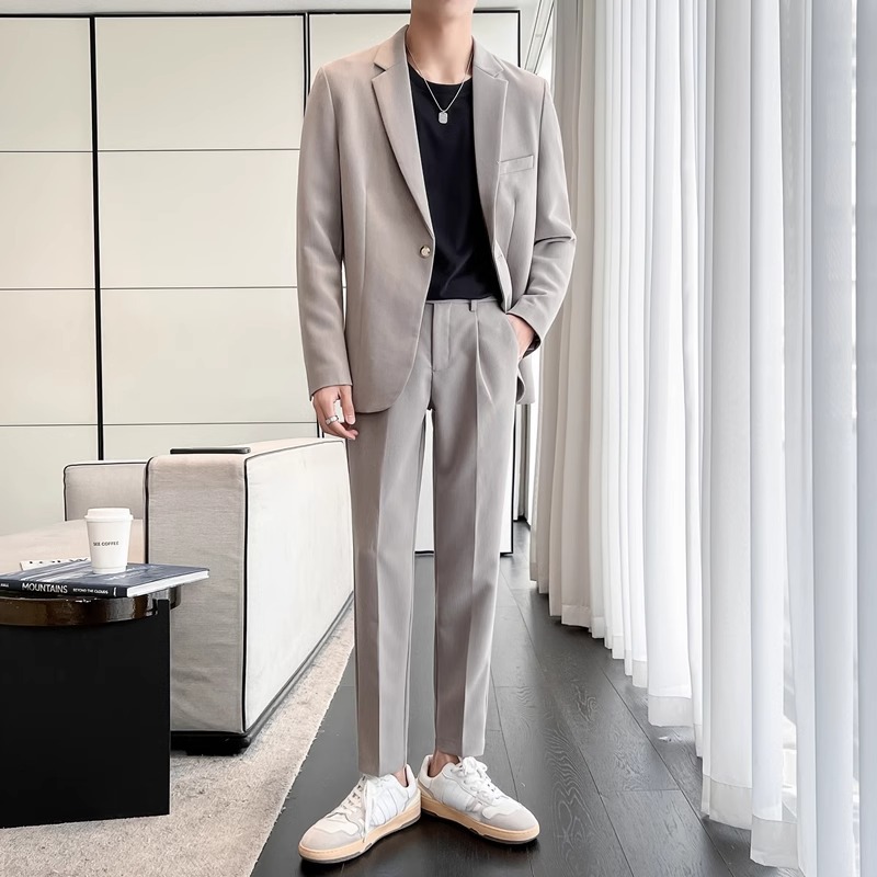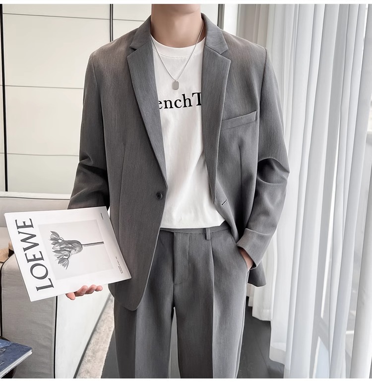 가을 솔리드 컬러 캐주얼 세트 남성용 다이퍼 재킷 유행 더피 핸섬 느슨한 세트 슬림 핏 바지