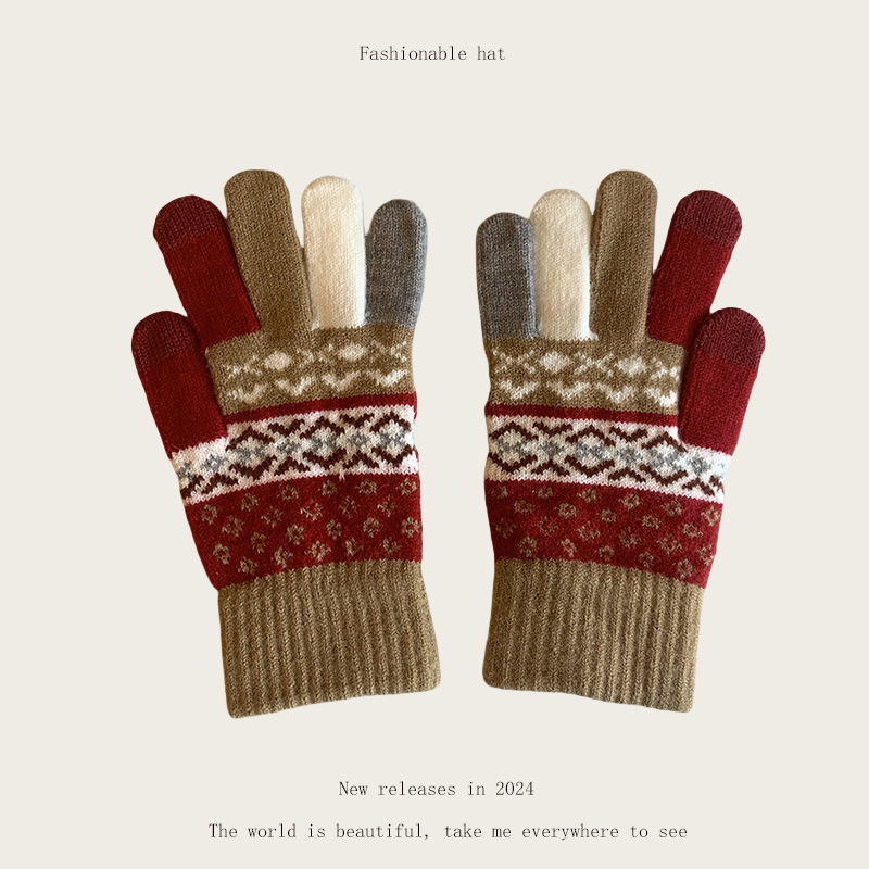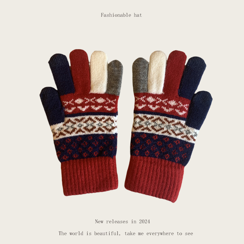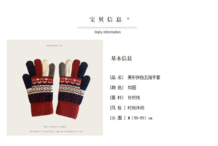 다섯 손가락 터치 스크린 장갑 얇은 학생 쓰기 타기 모든 경기 캐주얼 다이아몬드 컬러 매칭 핑거 라이딩 개인화 된 여성