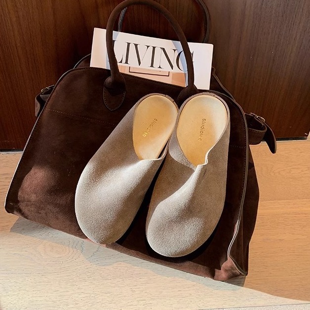 포도 엄마 같은 스타일 말 머리 줄 스타일 부드러운 국수 게으른 한 페달 플랫폼 큰 머리 굽기 신발 절반 슬리퍼 봄과 가을