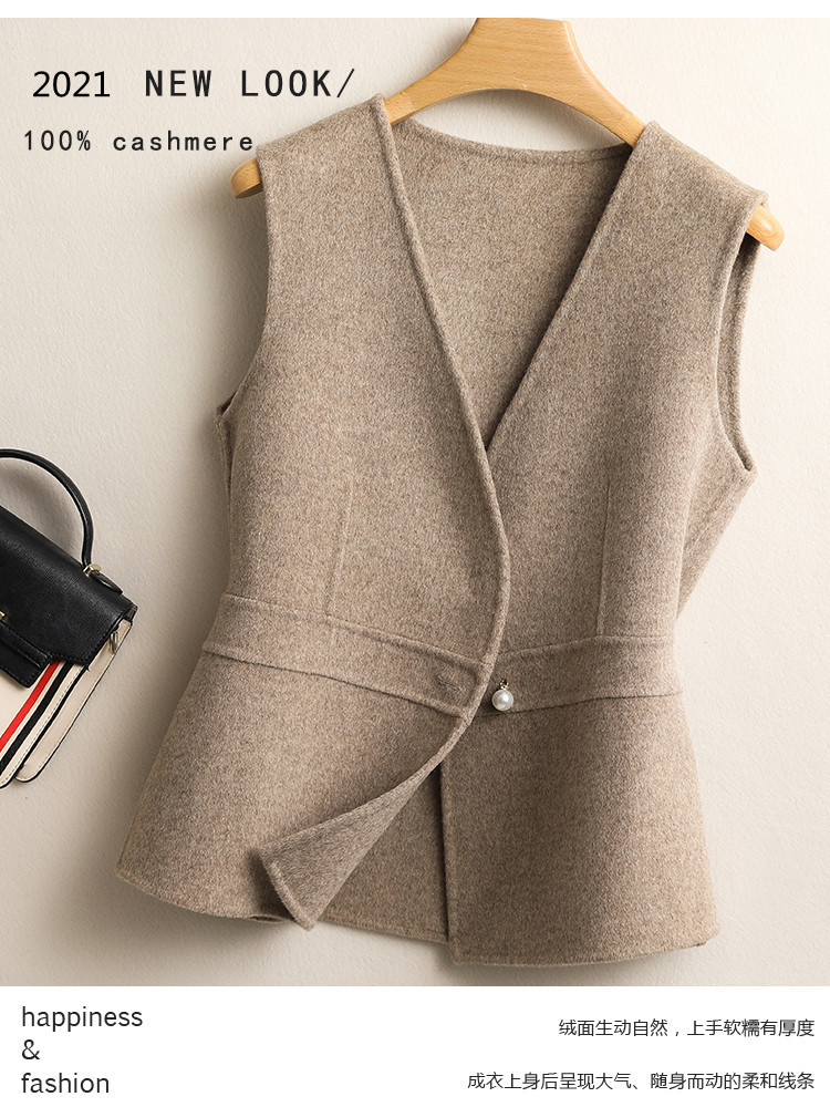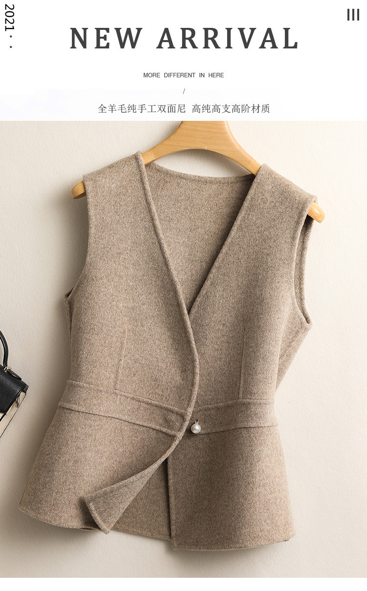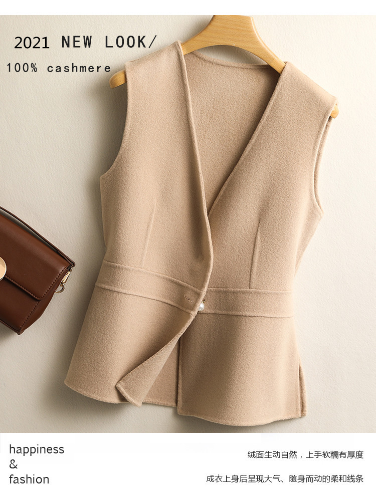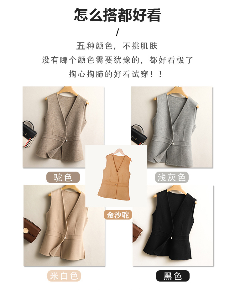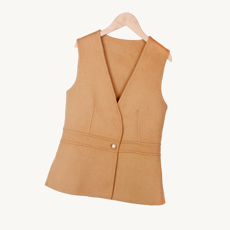 여성용 조끼 봄 가을 2025 신상 양면 울 턱시도 스타일 허리 조임 슬림핏 브이넥 셔츠 겹겹이 입는 조끼스토어 가기