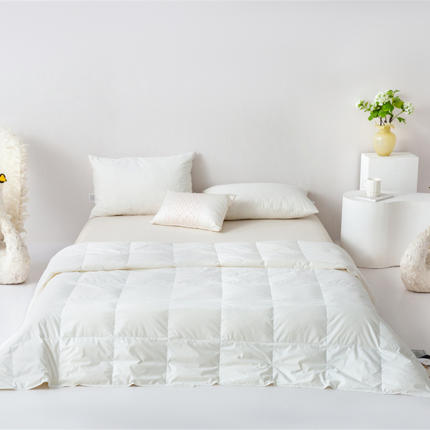 Filled with premium 95 white goose down, this comforter boasts superior insulation, maintaining optimal warmth even on the coldest nights. The down is carefully selected for its high loft and fluffiness, offering a cloud-like sleeping experience.