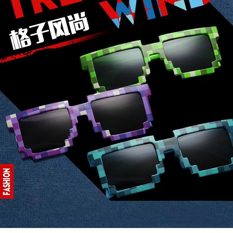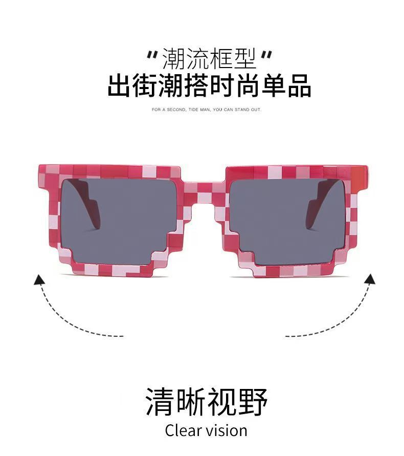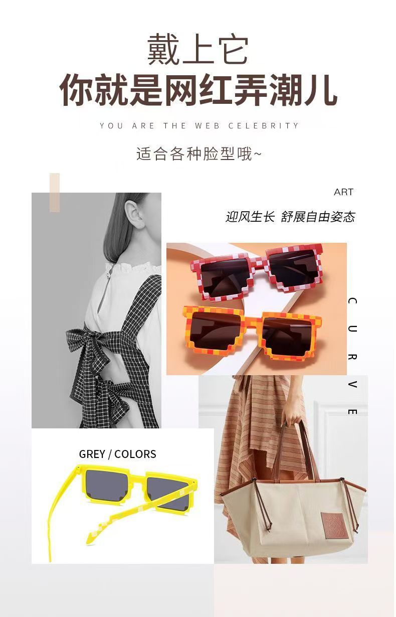 국경 간 무역 복고풍 체크무늬 사각 프레임 선글라스 남녀공용 트렌디 귀엽고 재미있는 블록 모자이크 선글라스