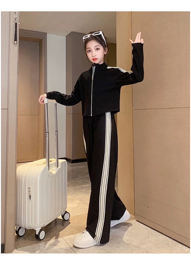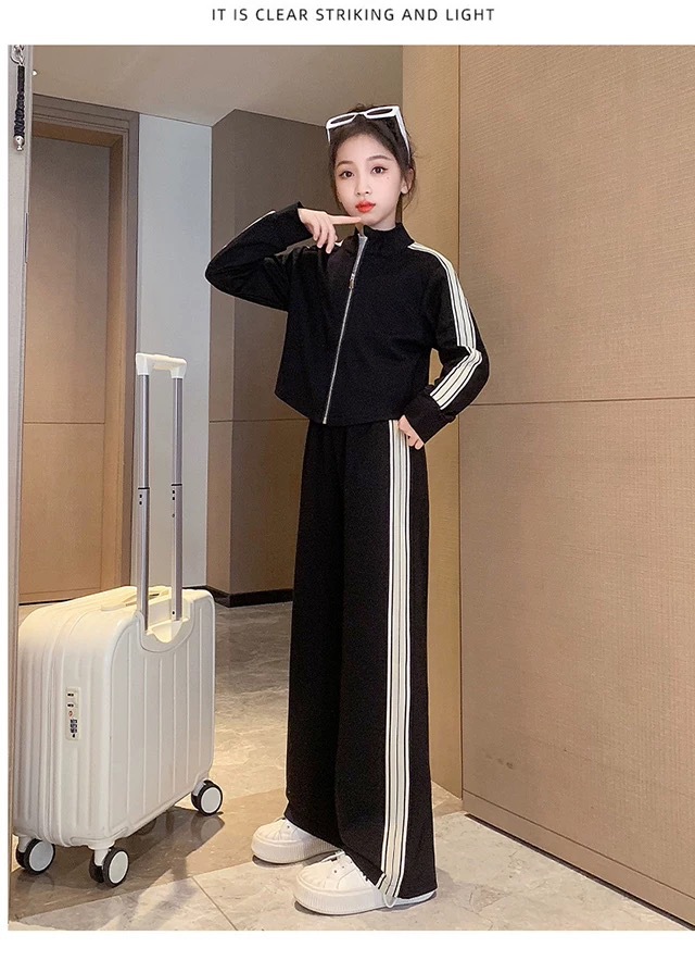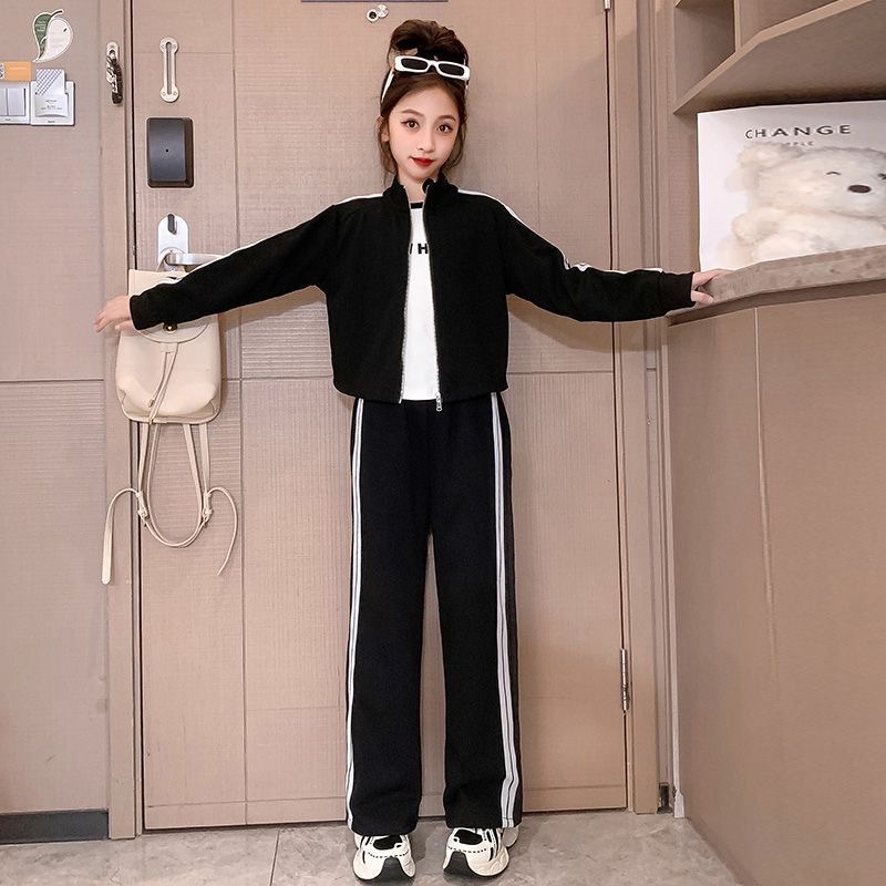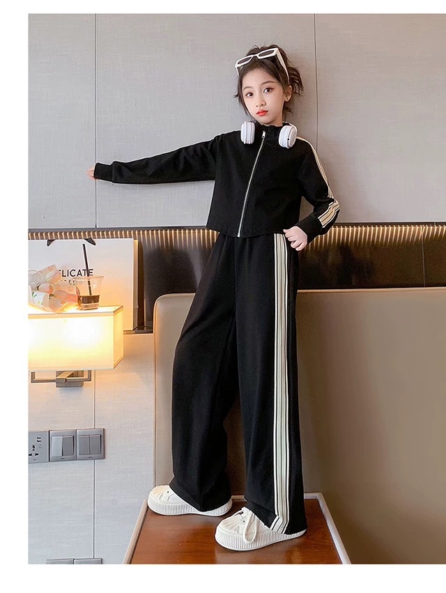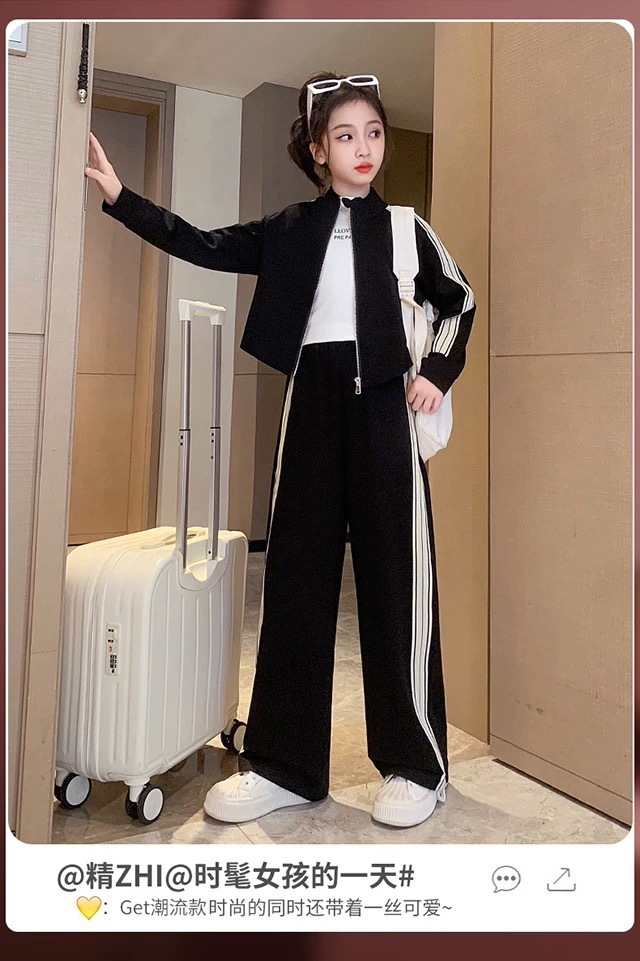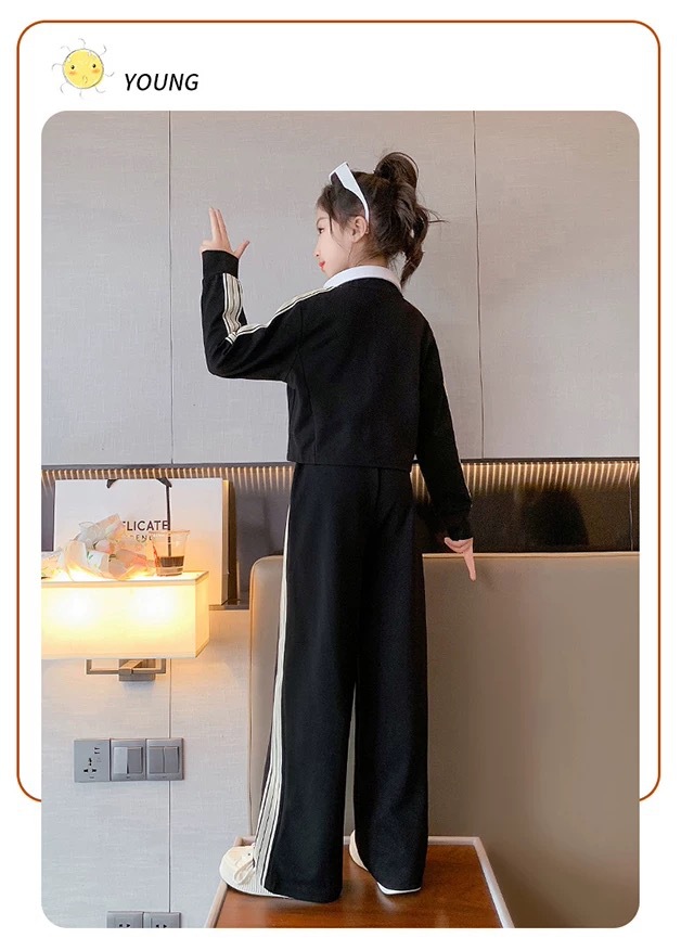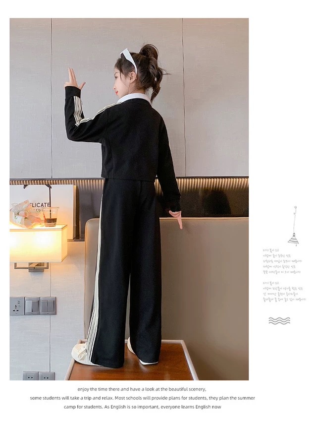 봄과 가을 아동복 패션 걸스 세트 2024 새로운 리본 걸스 긴 소매 바지 두 조각 세트 중 큰 어린이 패션 옷스토어 가기