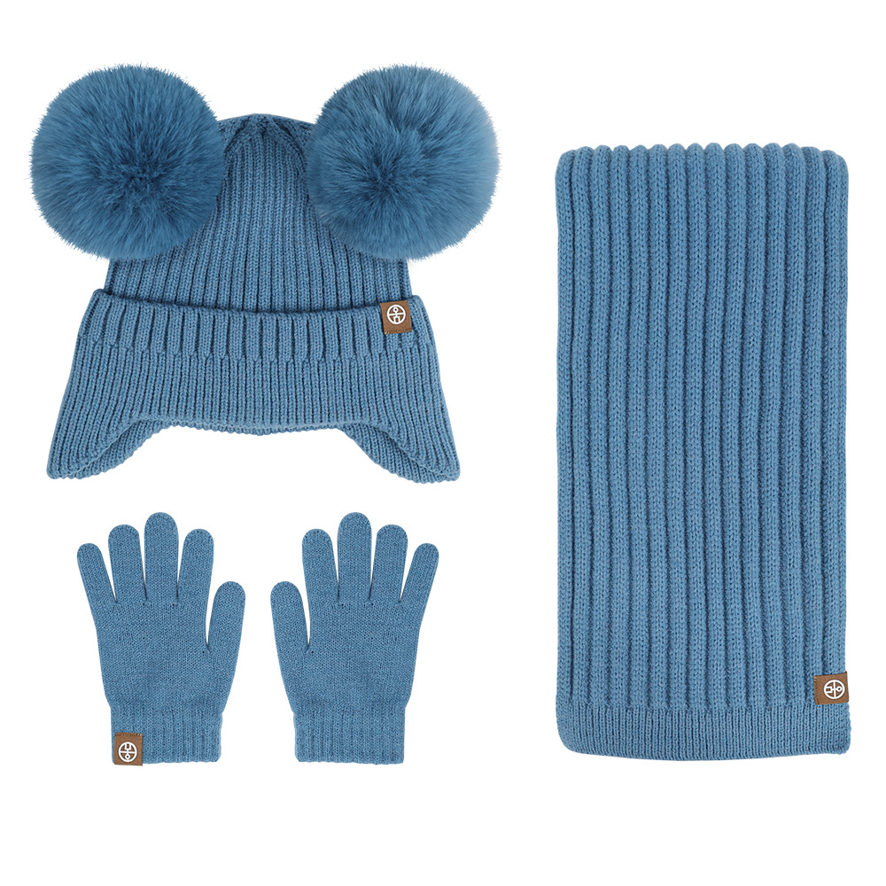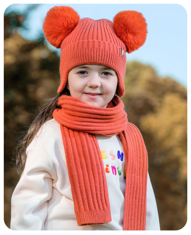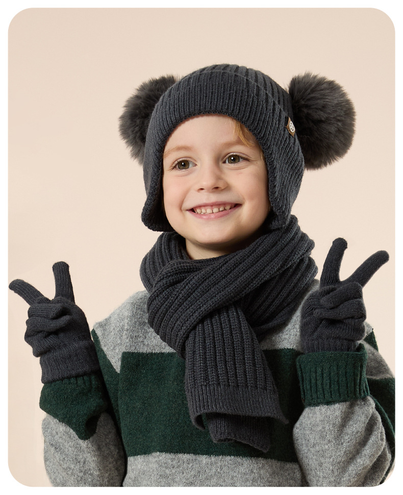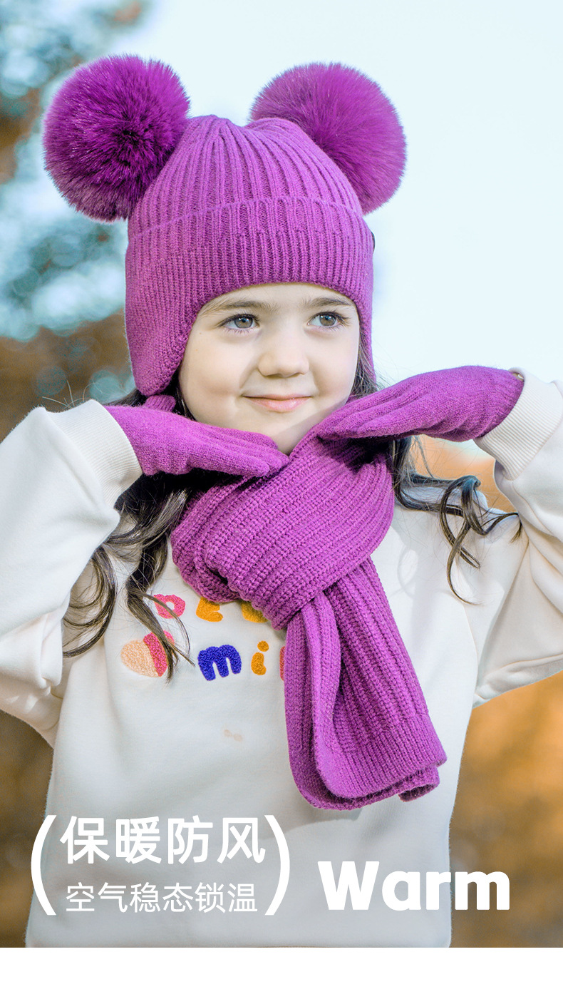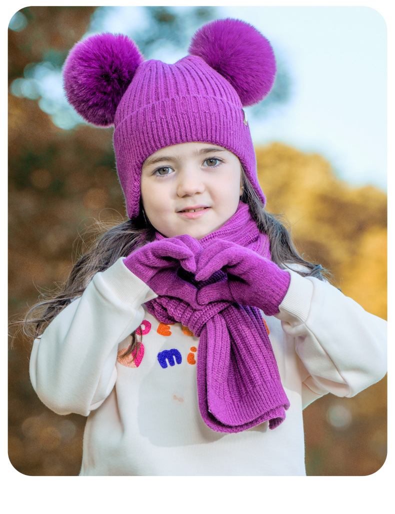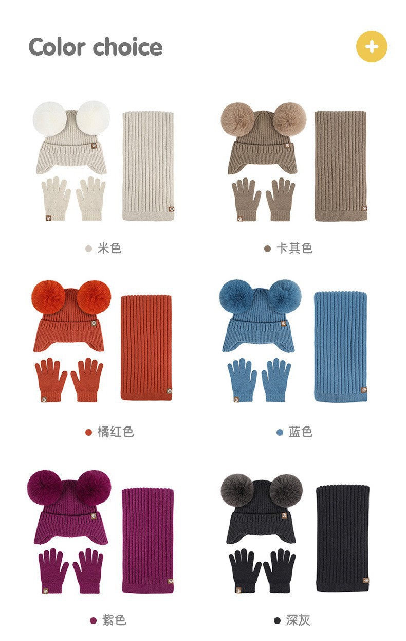 가을과 겨울 귀 보호 봉제 어린이 모자 따뜻한 귀여운 아기 소녀 모자 스카프 장갑 세트