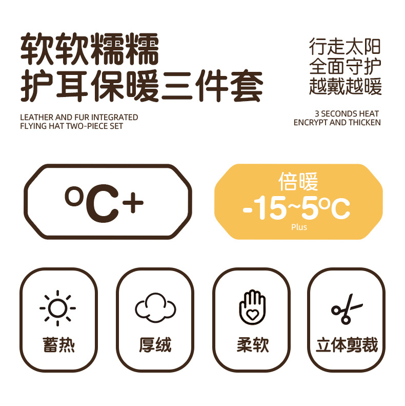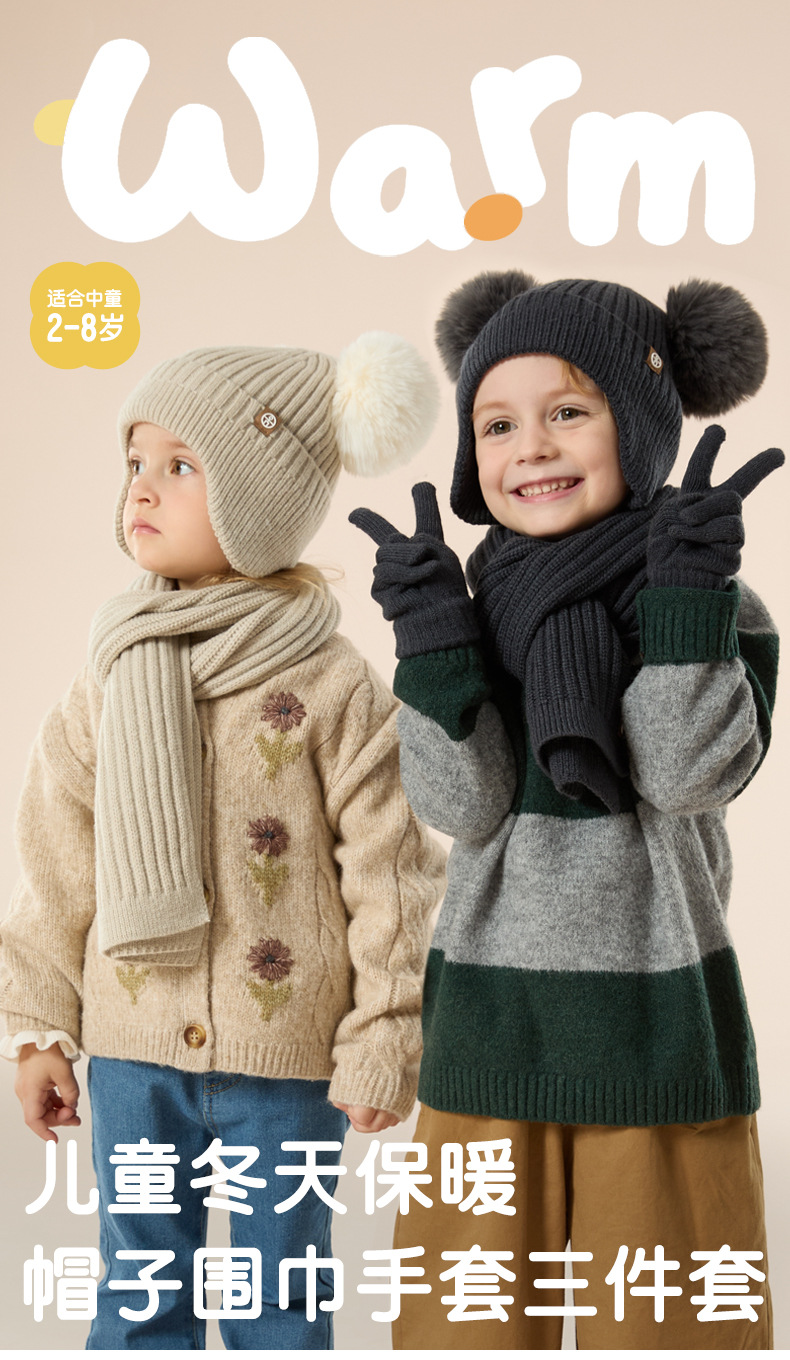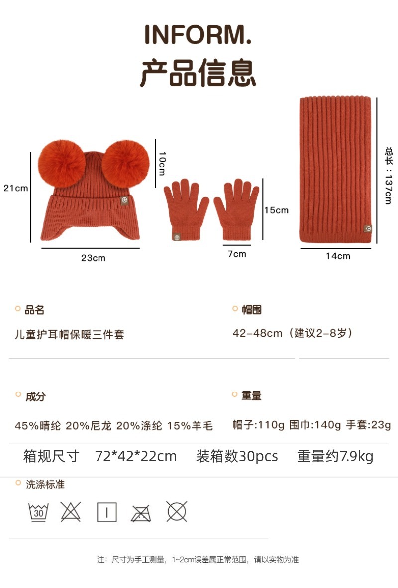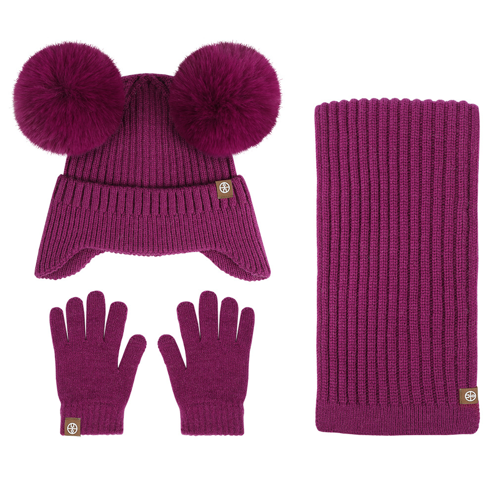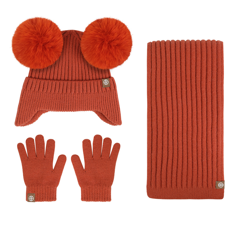 가을과 겨울 귀 보호 봉제 어린이 모자 따뜻한 귀여운 아기 소녀 모자 스카프 장갑 세트