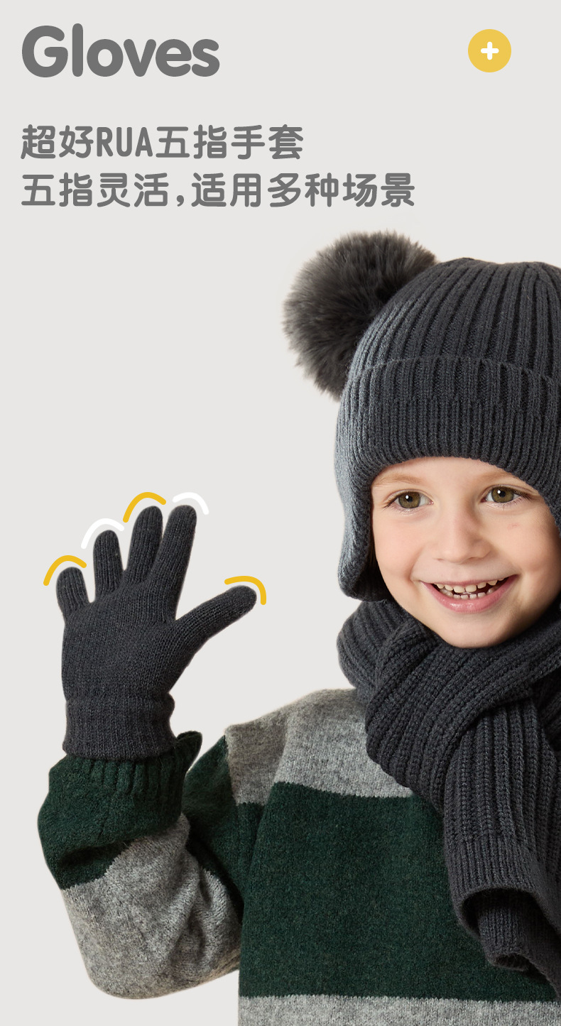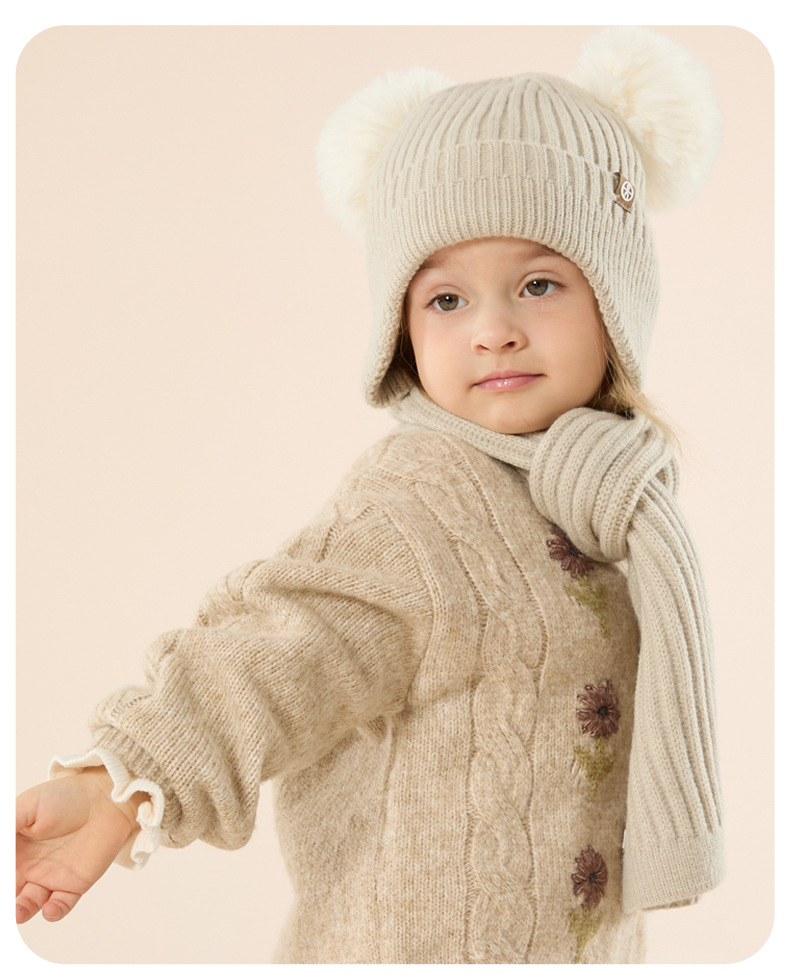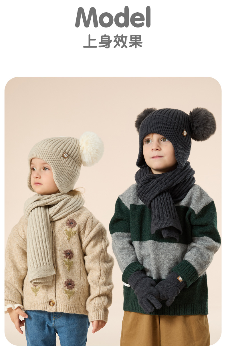 가을과 겨울 귀 보호 봉제 어린이 모자 따뜻한 귀여운 아기 소녀 모자 스카프 장갑 세트스토어 가기