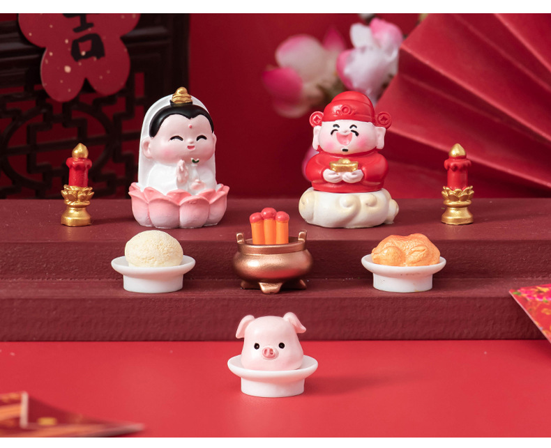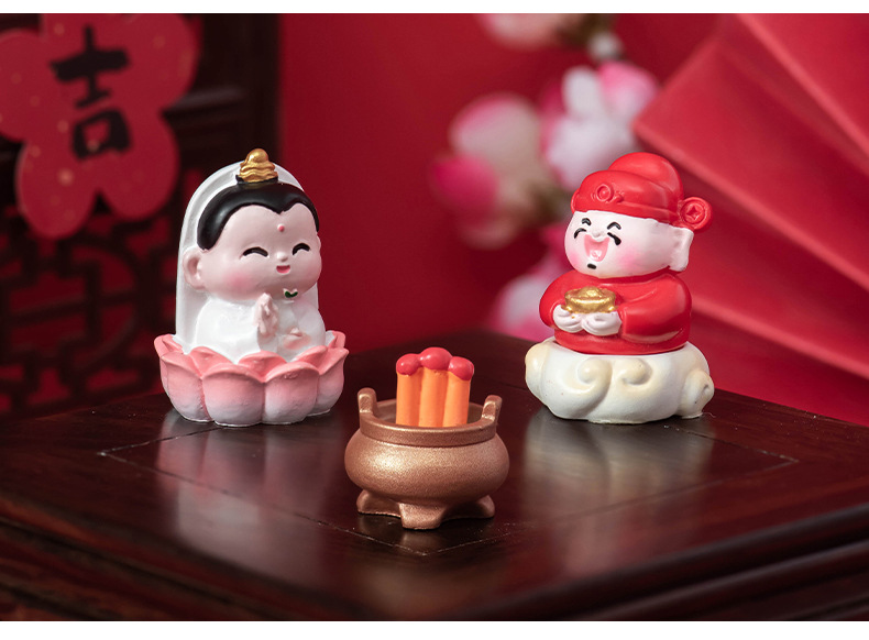 새해 숭배 관음 부 수지 작은 신 블라인드 박스 액세서리 마이크로 조경 데스크탑 카 로딩 포춘 작은 장식품