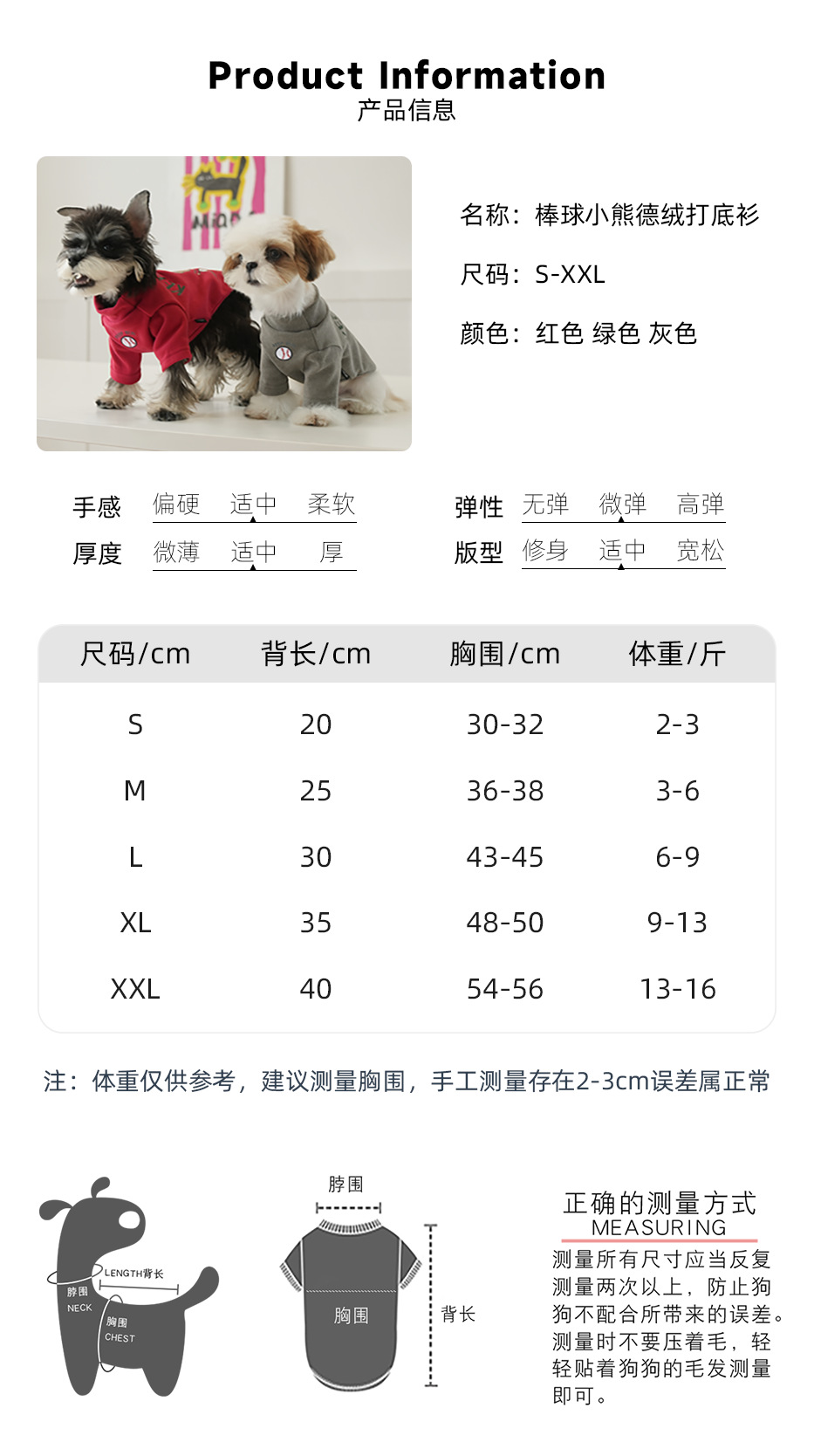 애완 동물 가을 겨울 옷 야구 곰 인쇄 된 두 다리 옷 샹송이 곰 강아지 중간 칼라베이스 셔츠스토어 가기