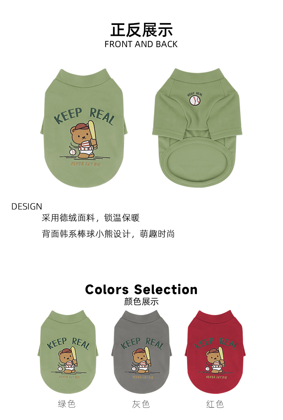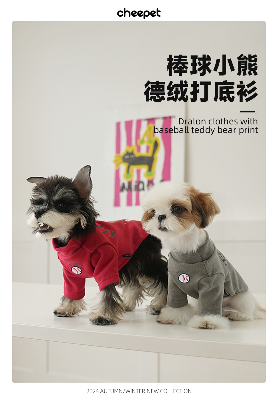 애완 동물 가을 겨울 옷 야구 곰 인쇄 된 두 다리 옷 샹송이 곰 강아지 중간 칼라베이스 셔츠