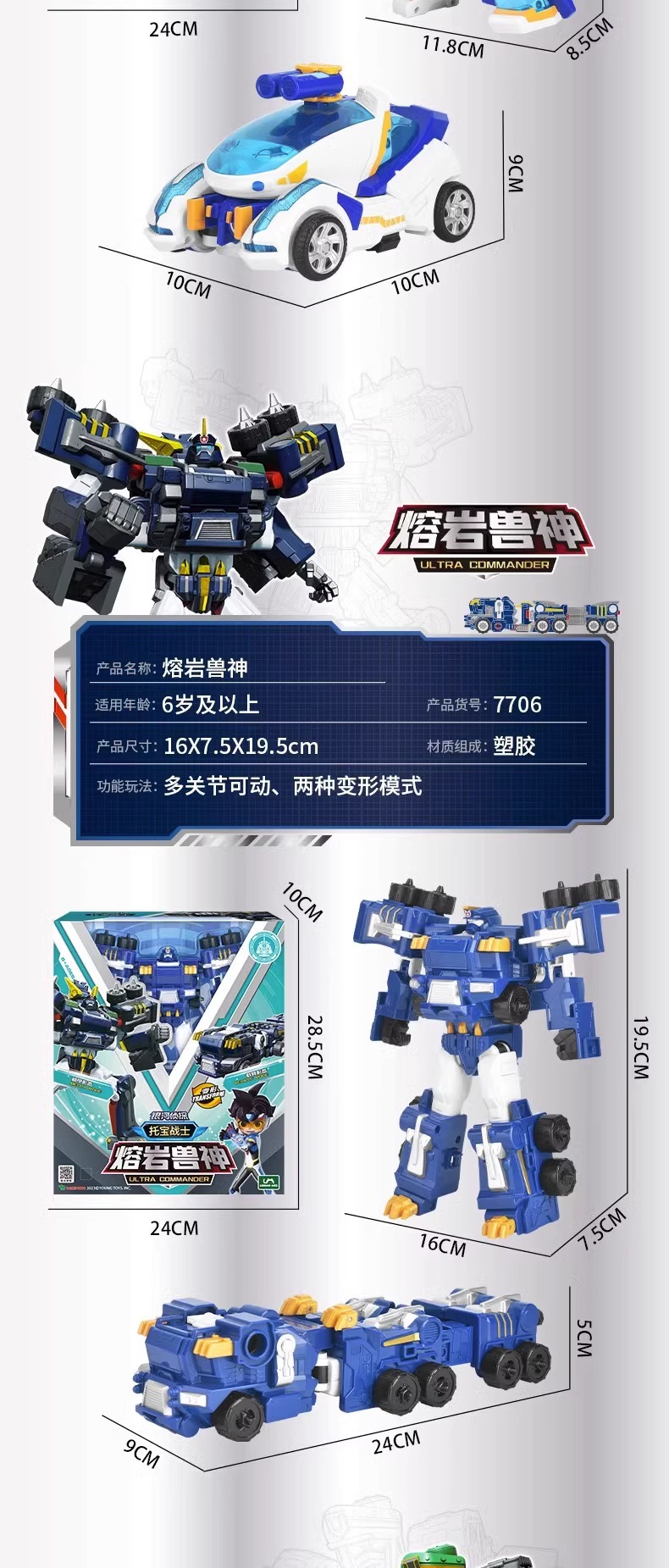 새로운 토포 전사 용암 야수 신 트레일러 메카 변형 로봇 어린이 장난감 소년 생일 선물 7706스토어 가기