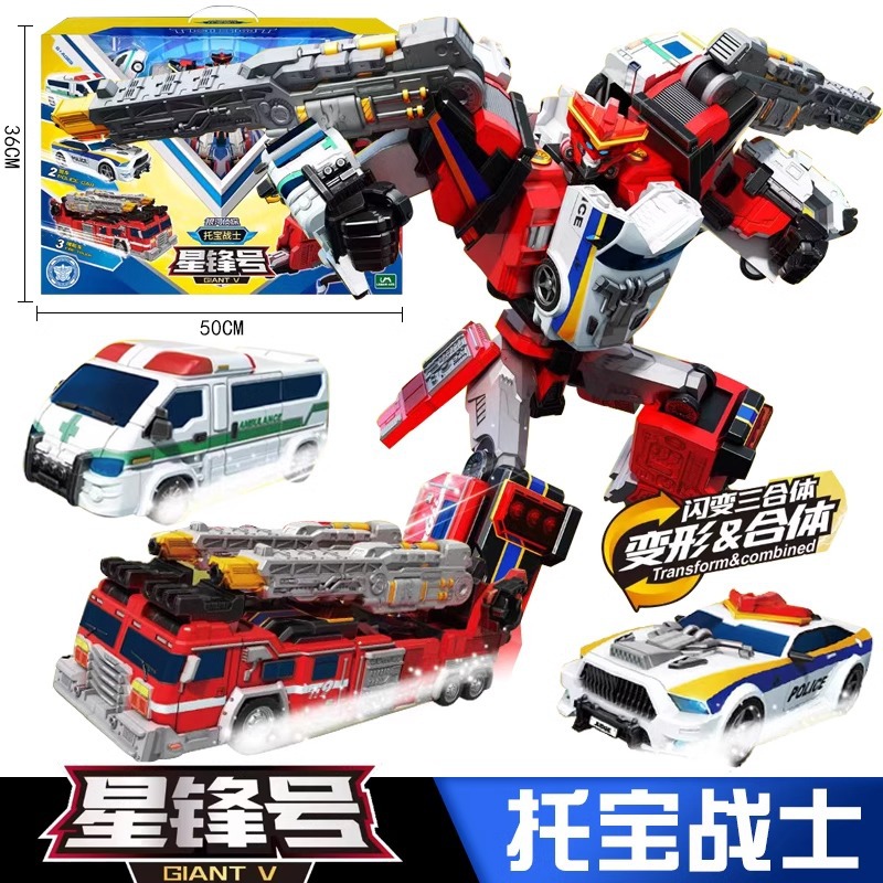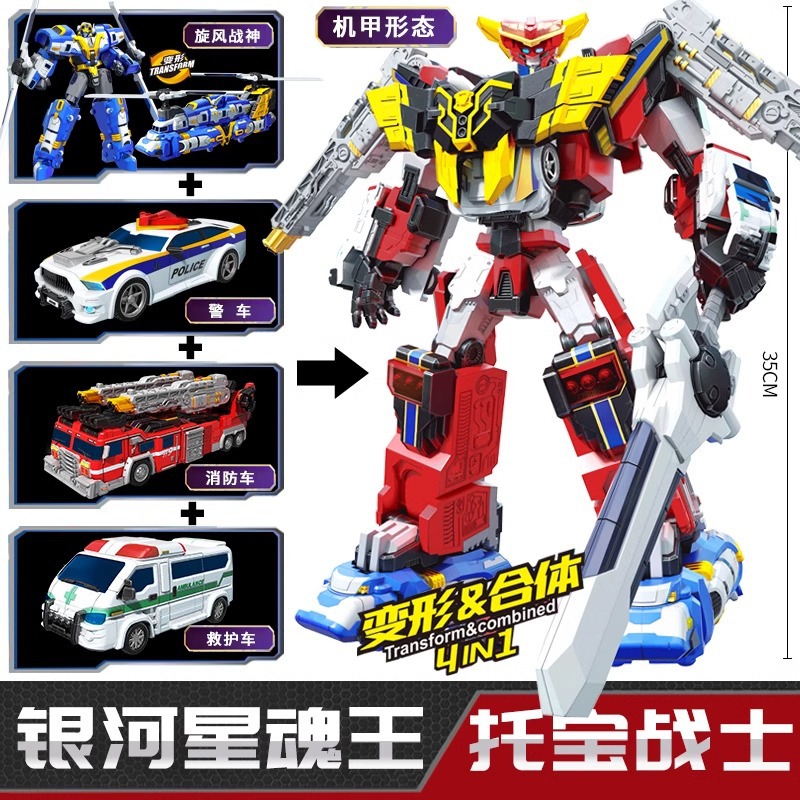 • 4-in-1 변형 [갤럭시 스타 소울 킹] 소방차 + 경찰차 + 구급차 + 회오리바람 전쟁의 신