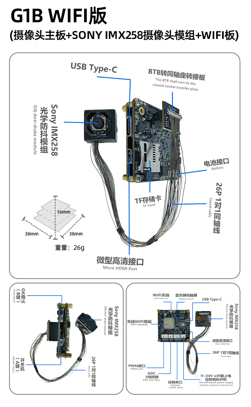 무선 카메라 모듈 맞춤형 4K 고화질 OIS 손떨림 방지 분리형 렌즈 스마트 웨어러블 카메라 모듈 DIY