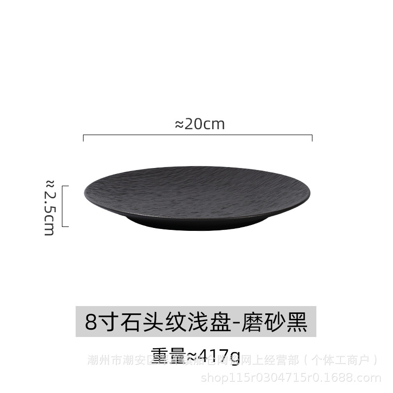 • 8inch 스톤 패턴 얕은 접시 - 매트 블랙