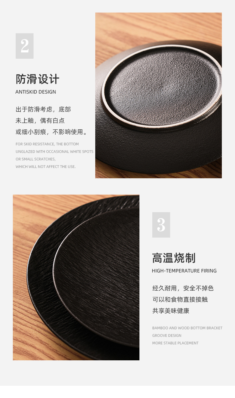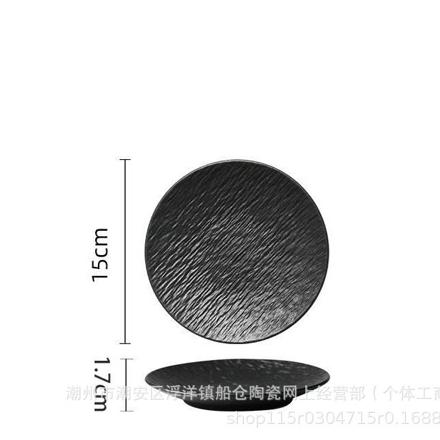 • 6inch 스톤 패턴 얕은 접시 - 매트 블랙