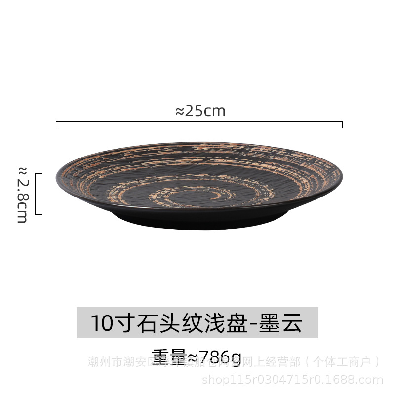 • 10inch 스톤 패턴 얕은 접시 - 매트 블랙