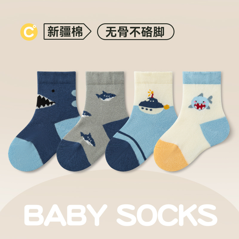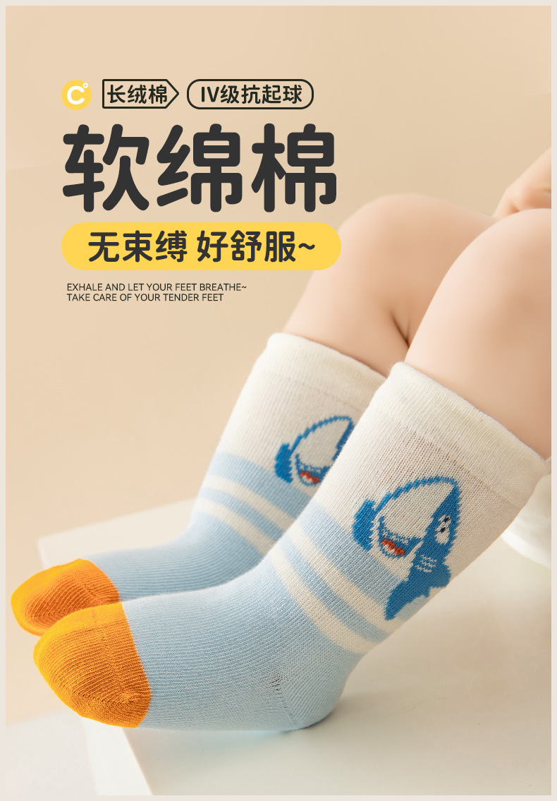 아기 양말 가을 겨울용 A급 면 아기 어린이용 편안한 무봉제 양말 발에 자극 없음 고탄력 만화 긴 양말스토어 가기