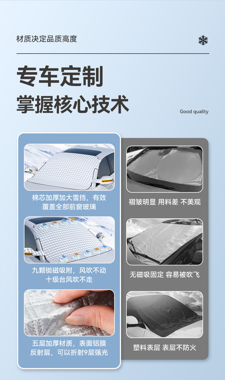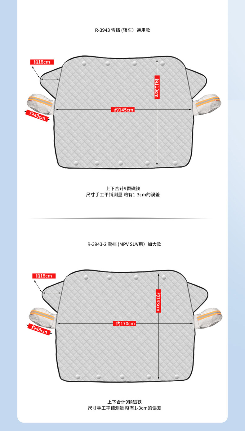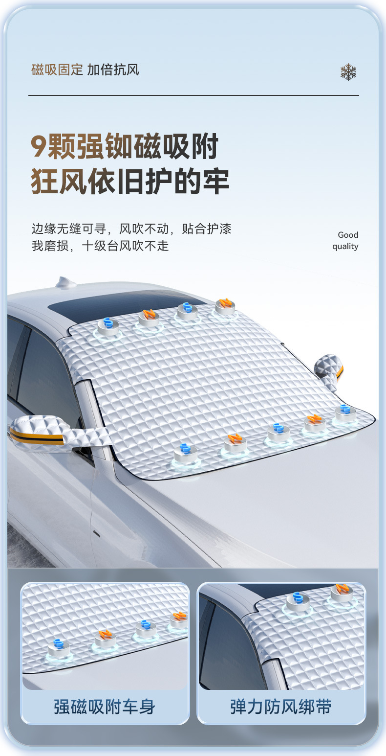 【产品名称】:通用型冬季雪挡防雪防霜汽车前挡玻璃遮阳挡防晒半车衣车罩