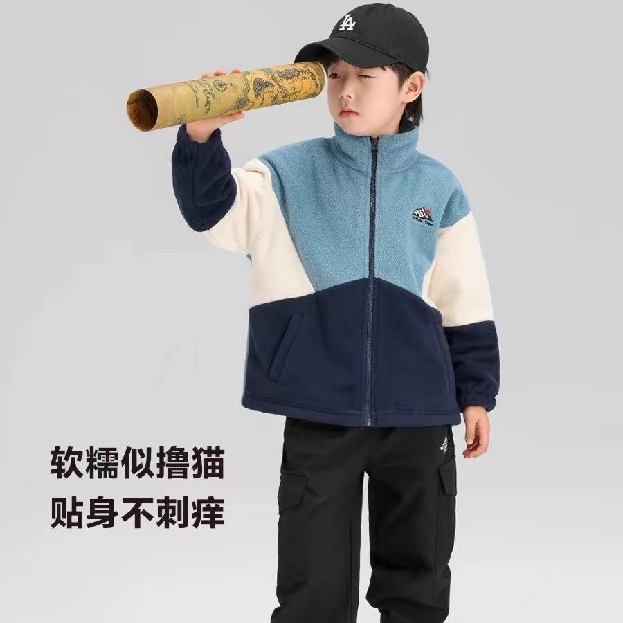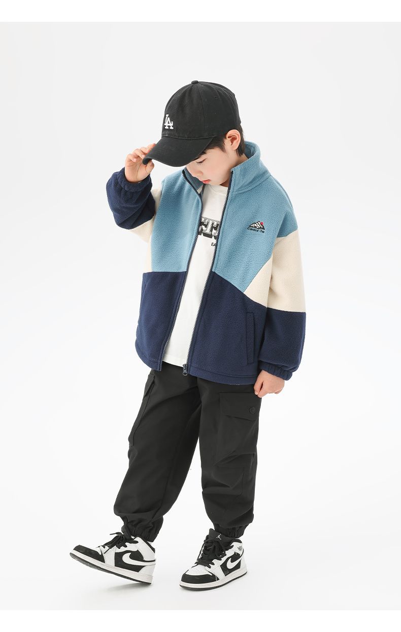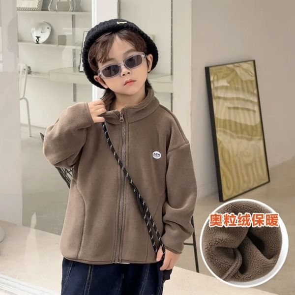 어린이 착용 소년 양털 코트 가을과 겨울 새로운 2024 어린이 따뜻한 탑 바느질 산 스타일 의상스토어 가기