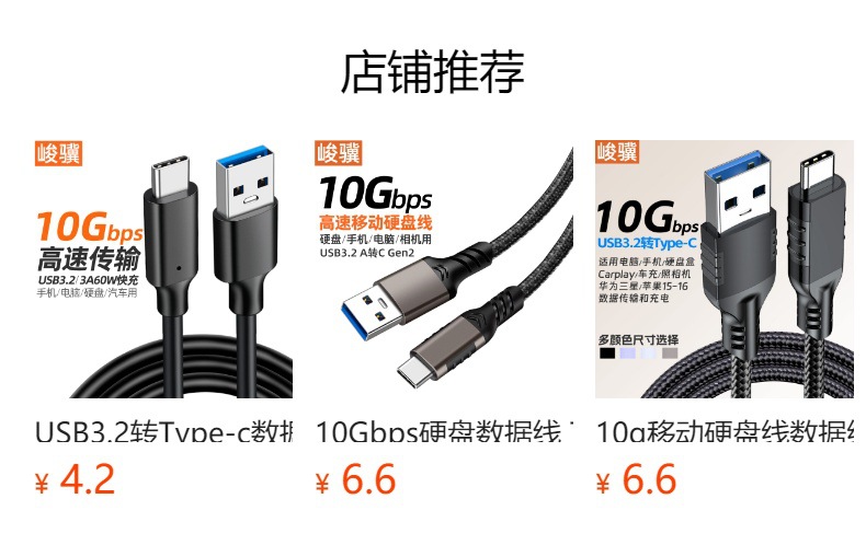 데이터 케이블 타입C 모바일 하드 드라이브 케이블 USB3.2 to 타입C 10Gbps 고속 케이블 카플레이 케이블 60W스토어 가기