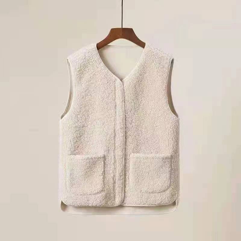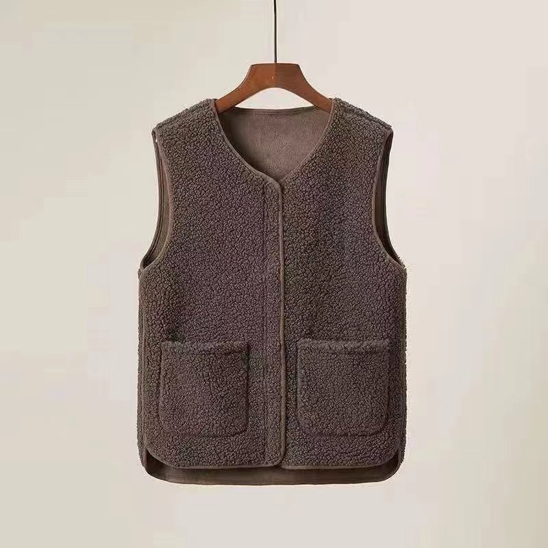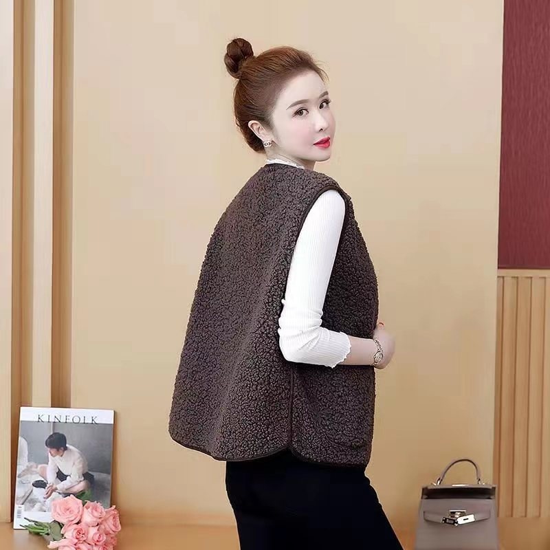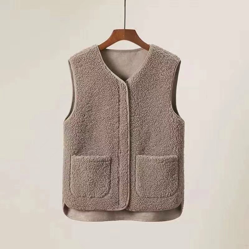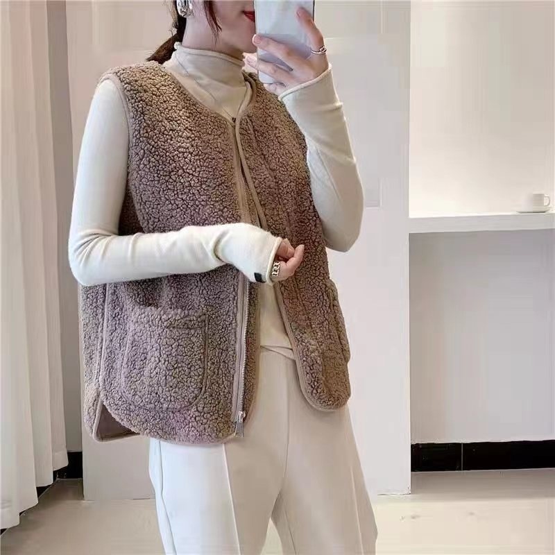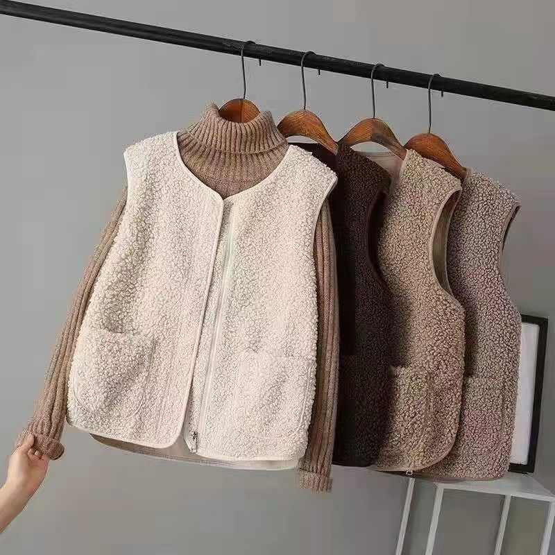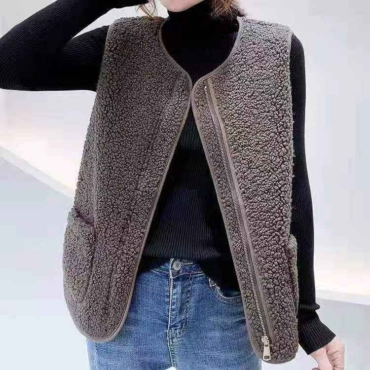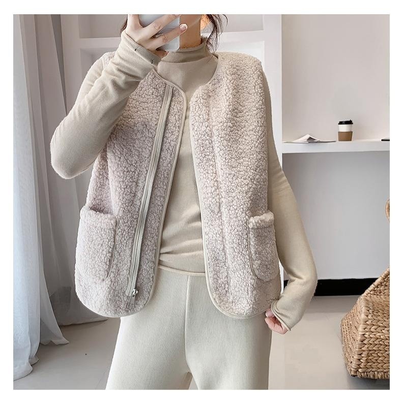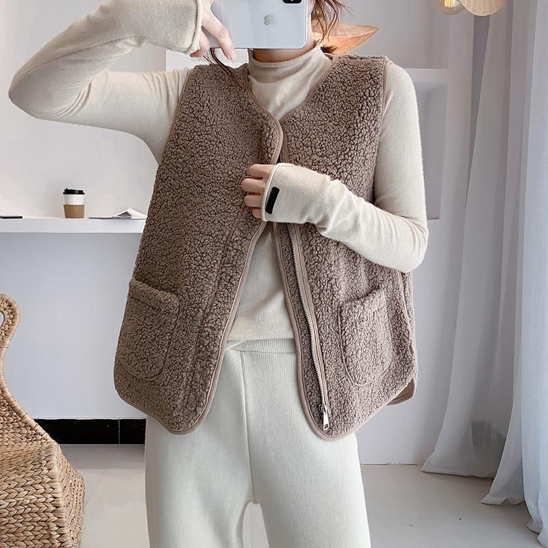 양모 조끼 여자 가을 겨울 간단한 따뜻한 조끼 새로운 올 매치 원피스 지퍼 조끼스토어 가기