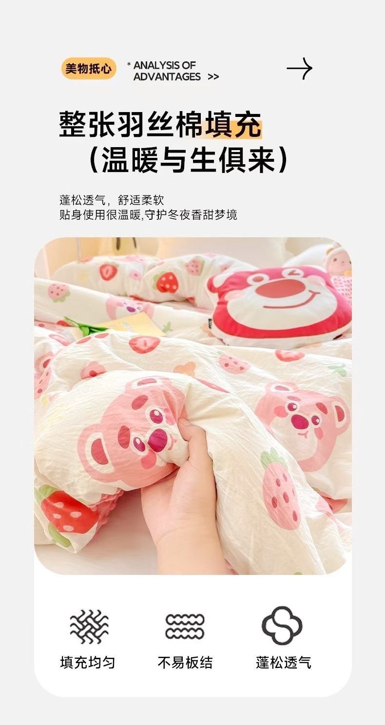 두두이의 대두털 이불은 세탁기로 세탁 가능하며, 봄과 가을용 에어컨 이불, 두꺼운 겨울용 이불, 어린이용 싱글 여름용 시원한 이불, 면 이불심으로 구성되어 있습니다.스토어 가기