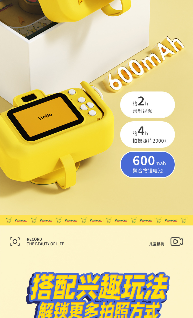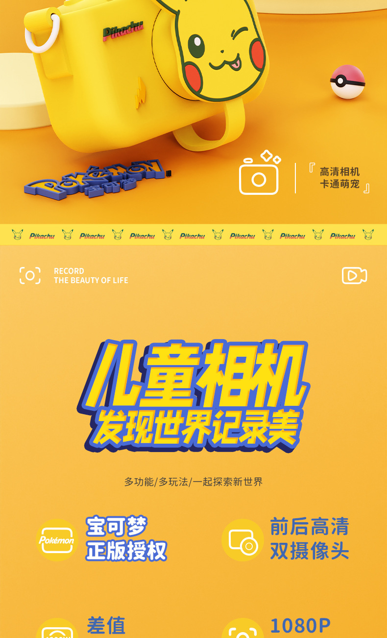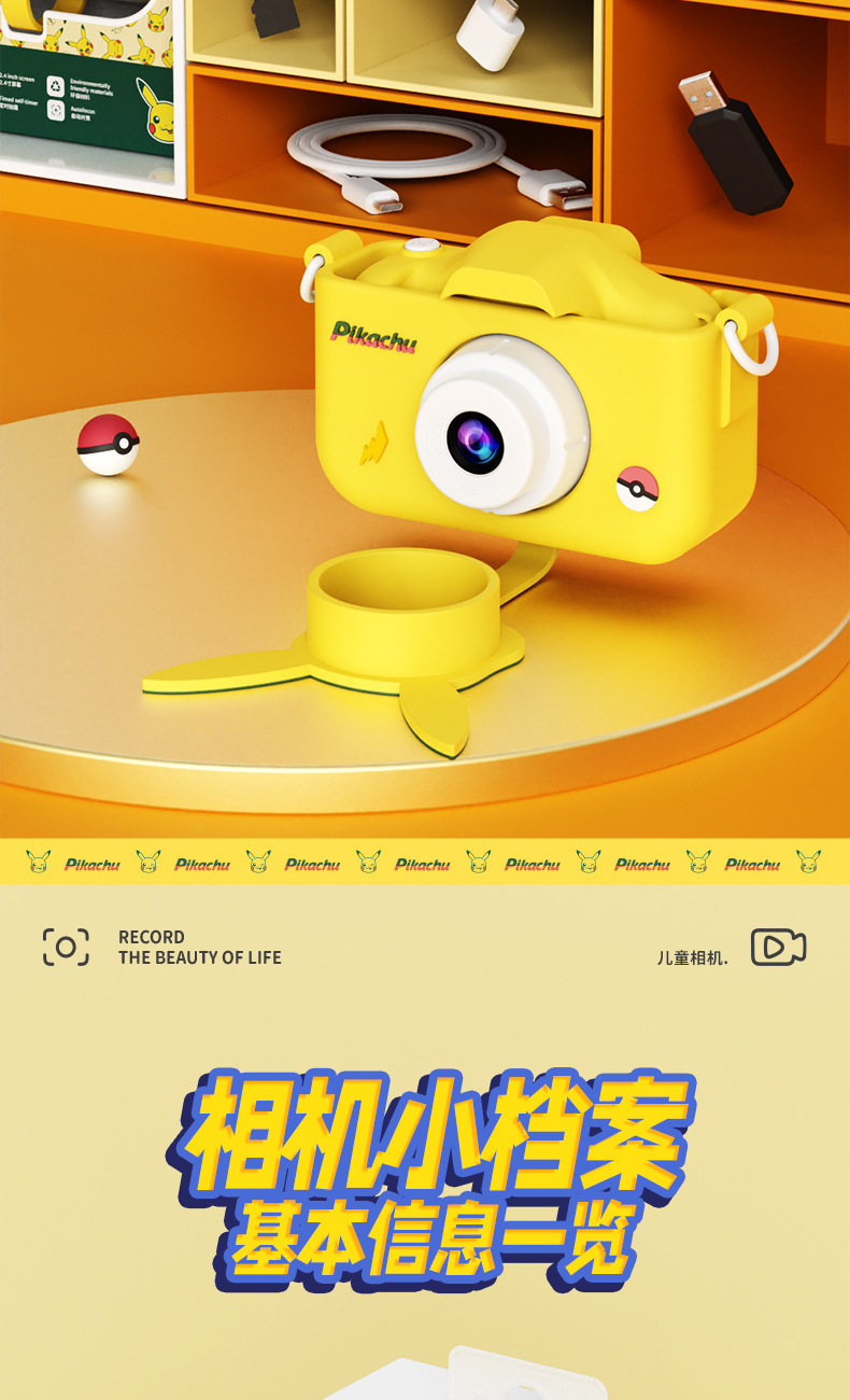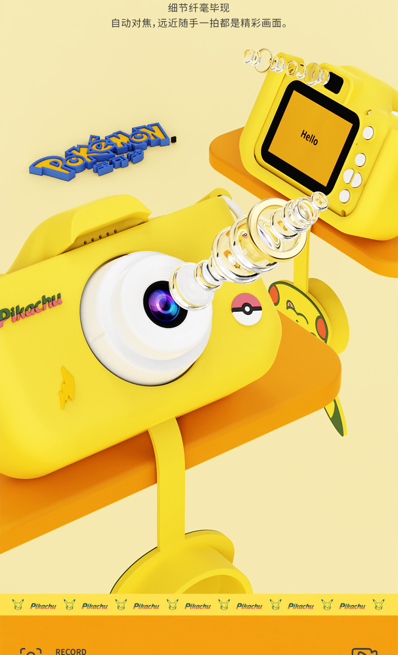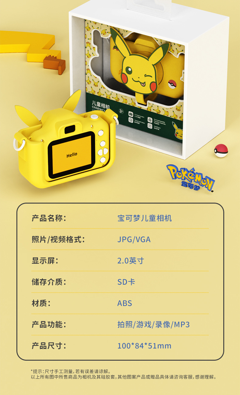 Pikachu 정품 라이센스 어린이 카메라는 사진과 비디오를 찍을 수 있습니다 고화질 더블 샷 재미있는 교육 장난감 카메라