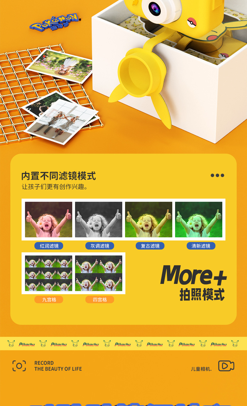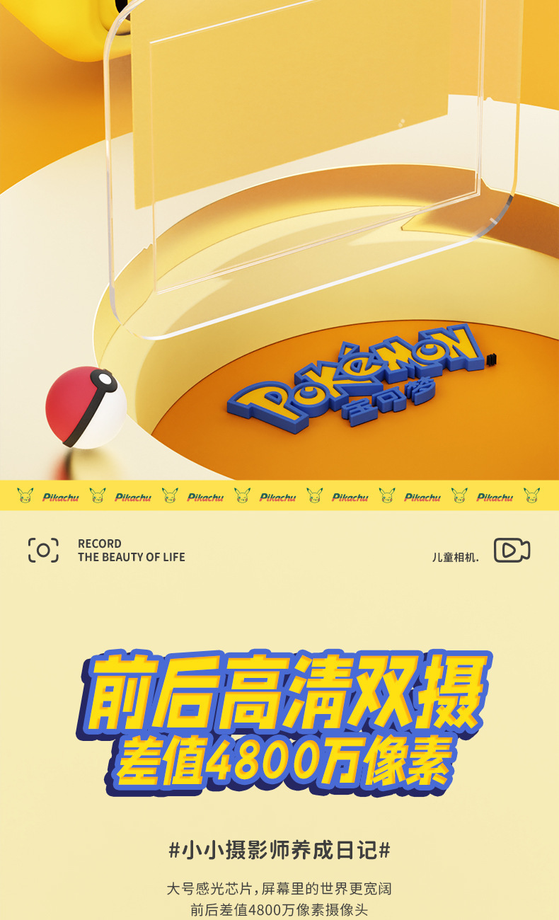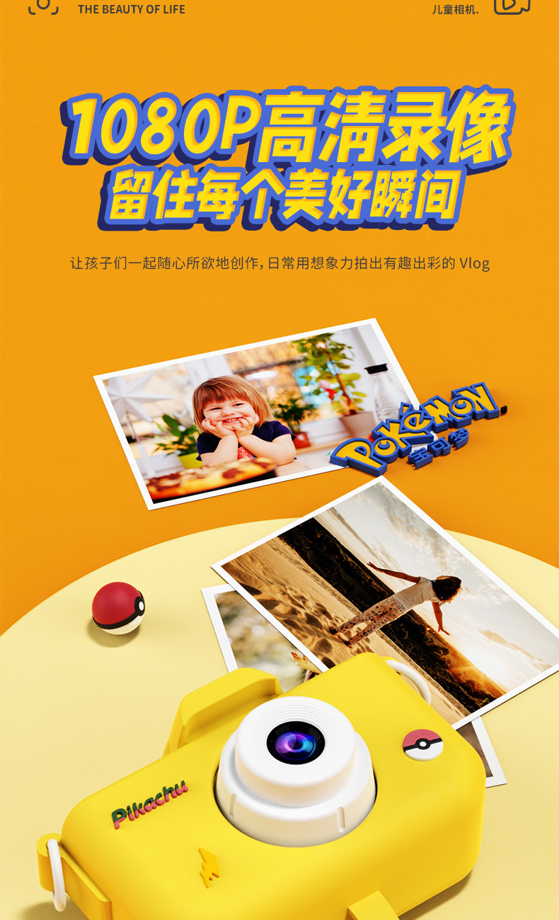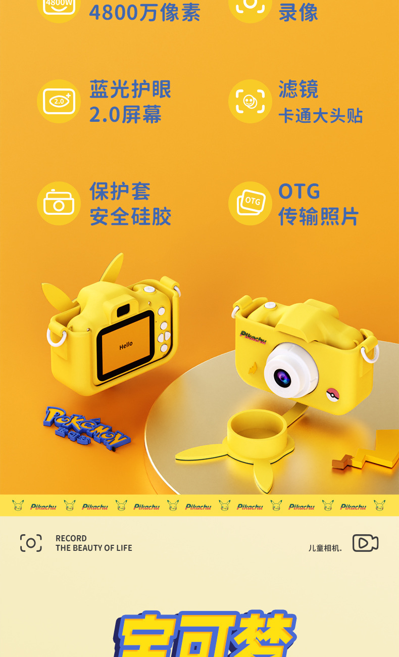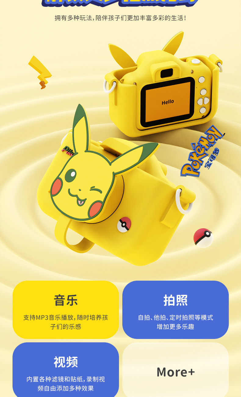 Pikachu 정품 라이센스 어린이 카메라는 사진과 비디오를 찍을 수 있습니다 고화질 더블 샷 재미있는 교육 장난감 카메라