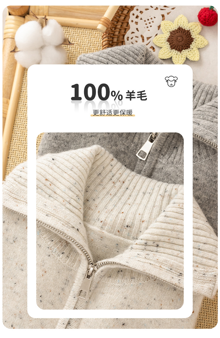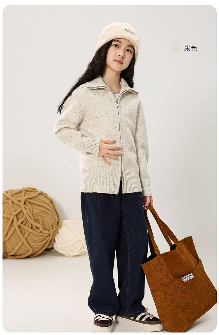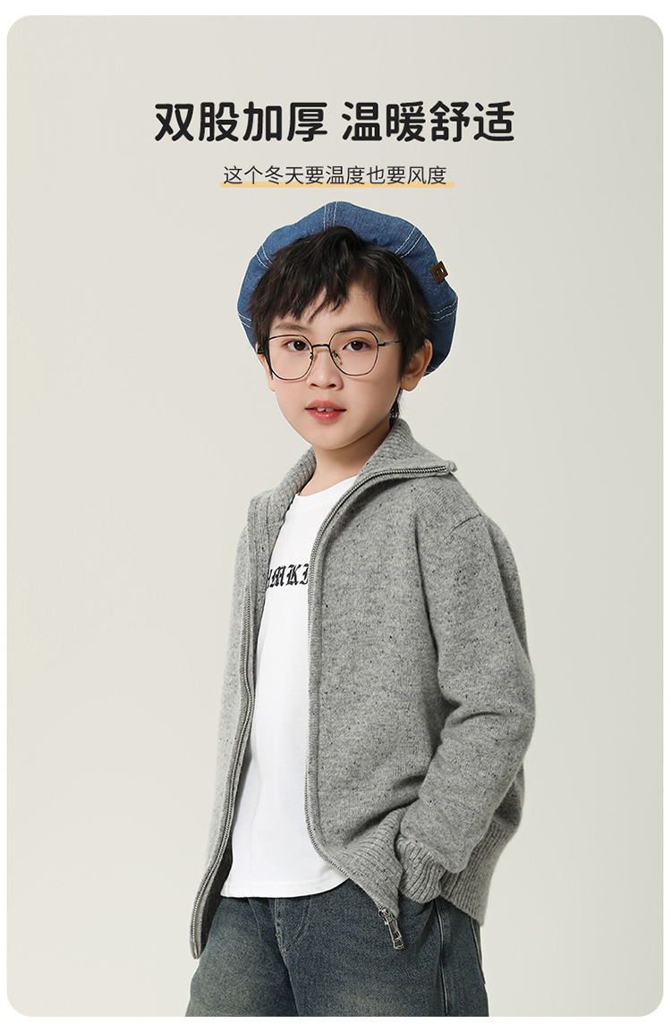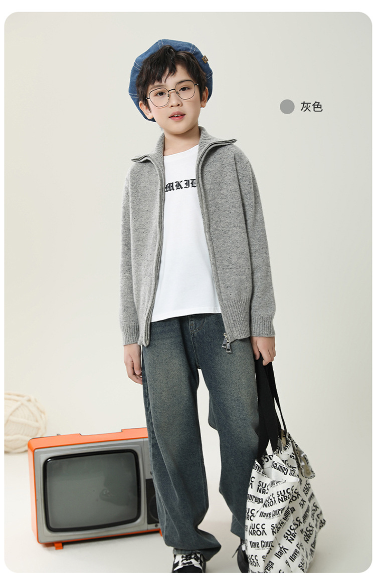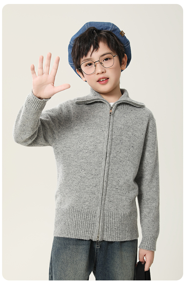 [100% 양모] 소년 하이칼라 어린이 양모 스웨터 화이트 포인트 원사 두꺼운 지퍼 카디건 한국외투