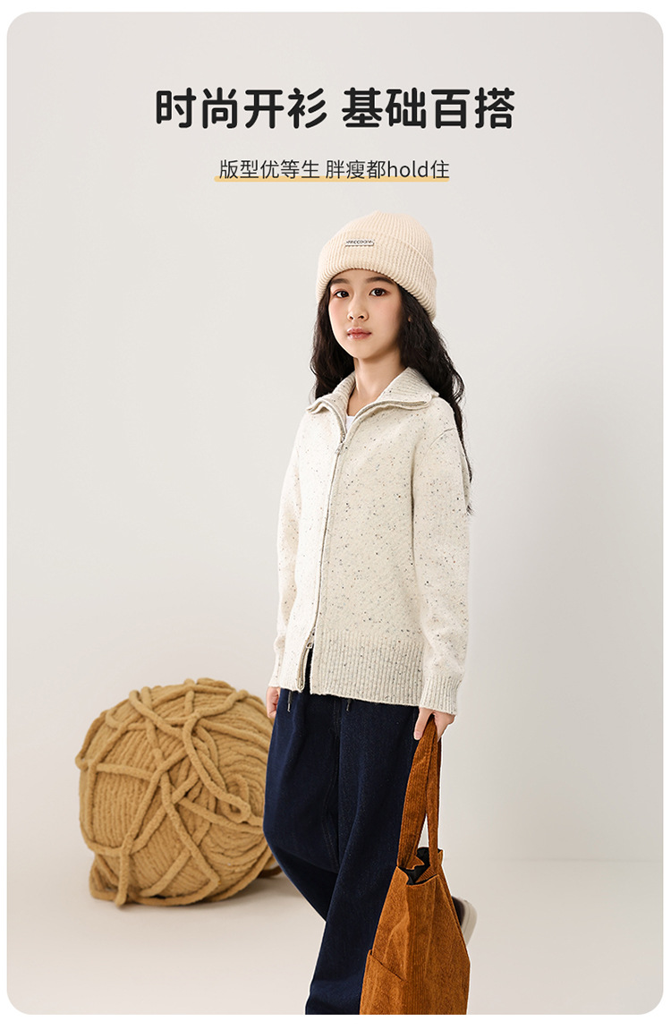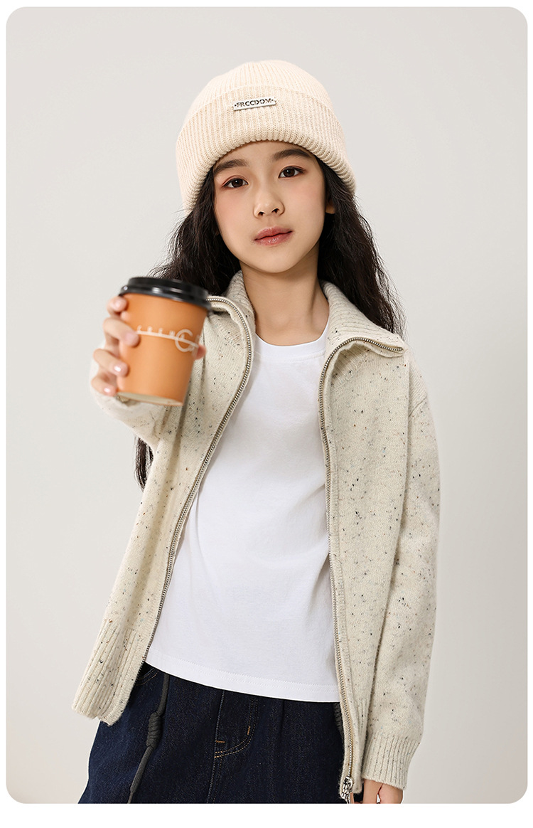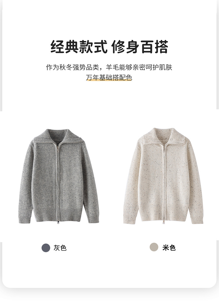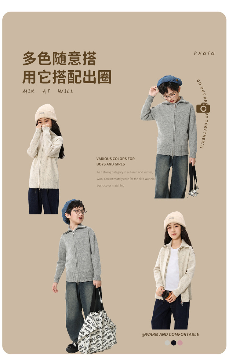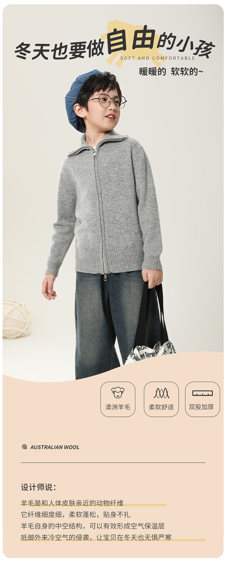 [100% 양모] 소년 하이칼라 어린이 양모 스웨터 화이트 포인트 원사 두꺼운 지퍼 카디건 한국외투