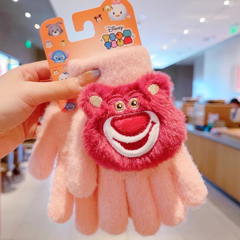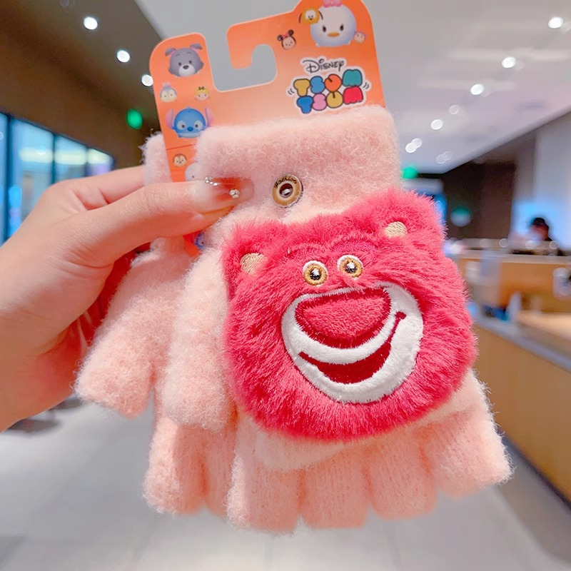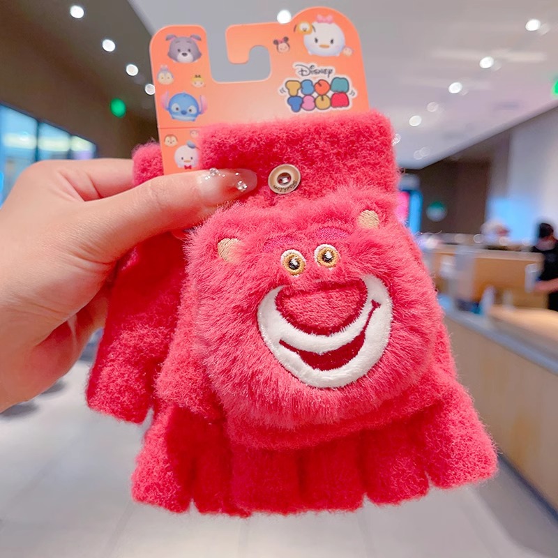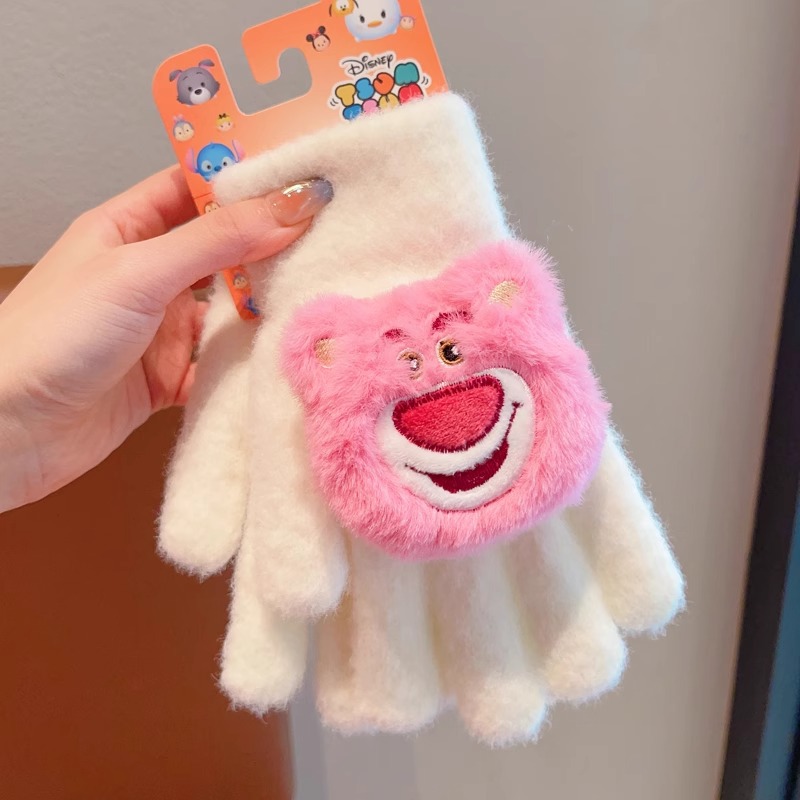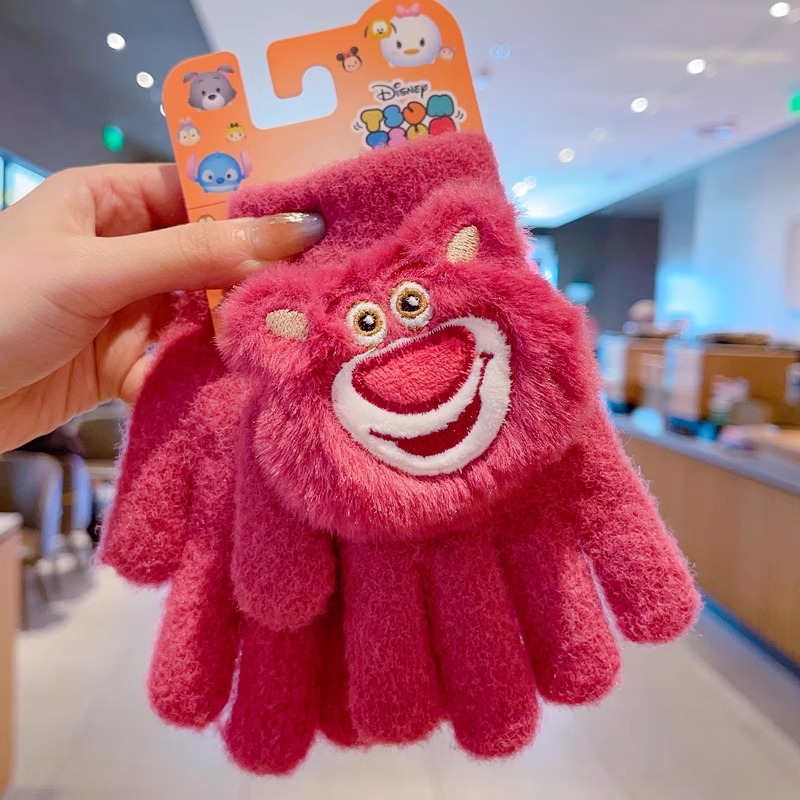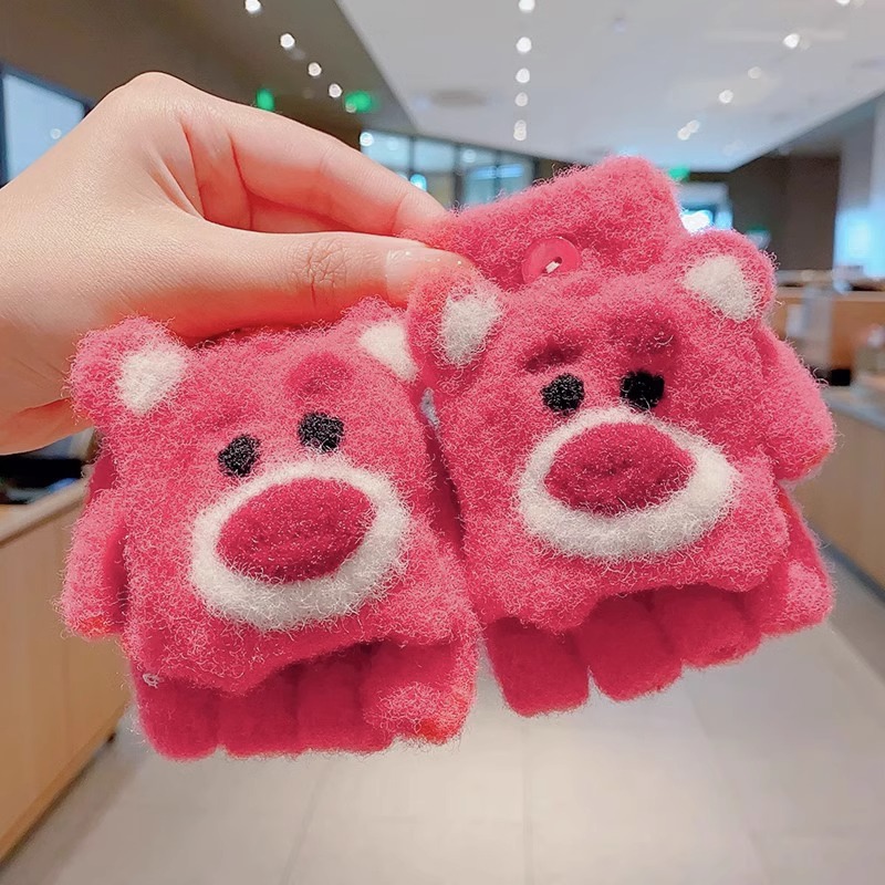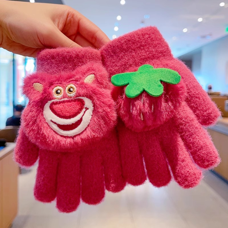 딸기 곰 어린이 장갑 가을과 겨울 소녀 아기 따뜻한 두꺼운 분할 손가락 소녀 풀 핑거 다섯 손가락 아이 겨울스토어 가기