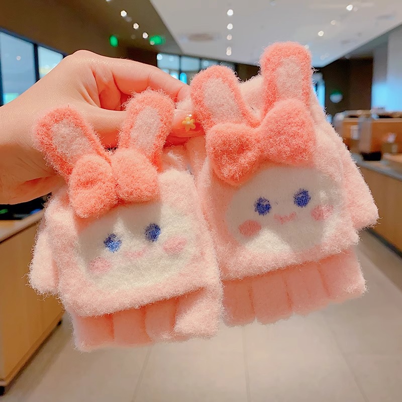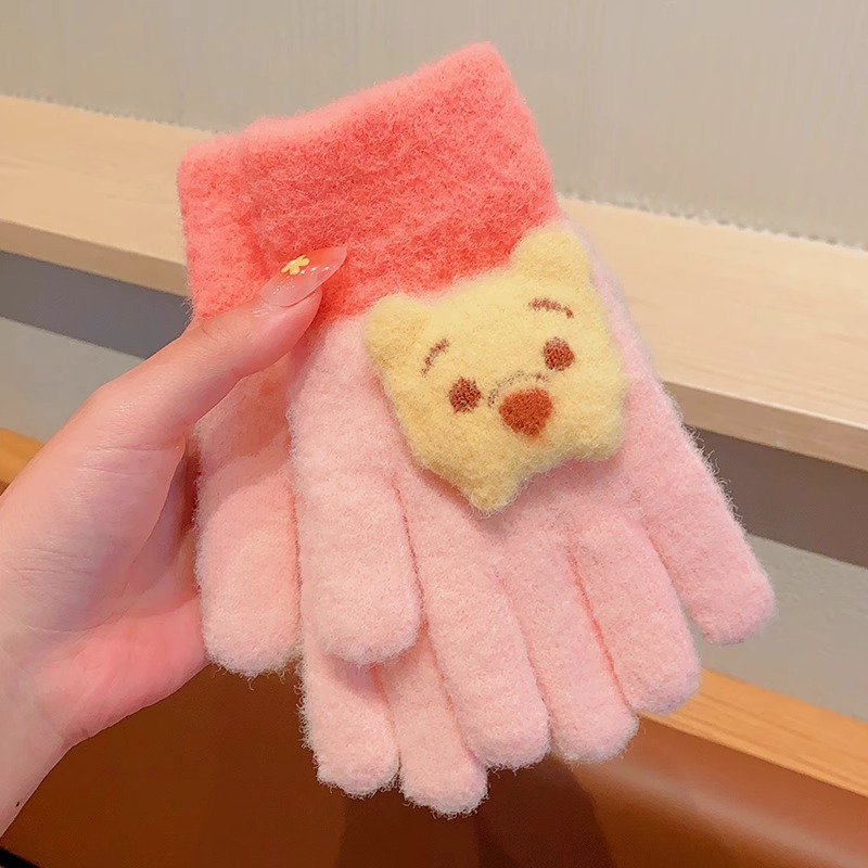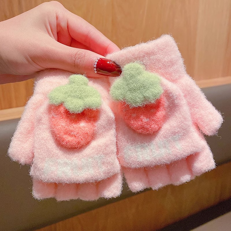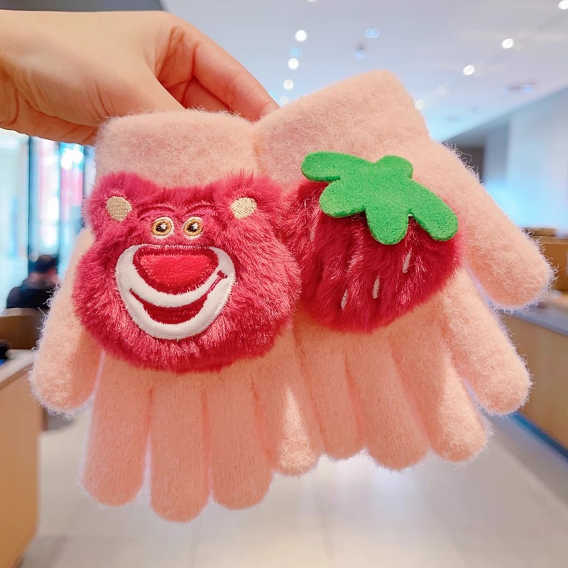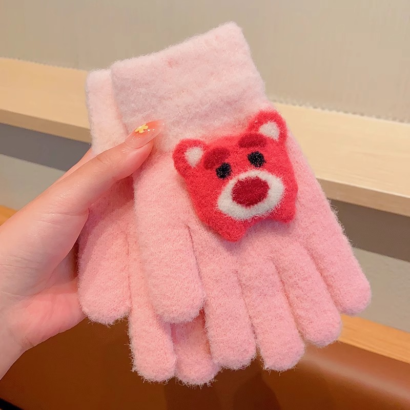 딸기 곰 어린이 장갑 가을과 겨울 소녀 아기 따뜻한 두꺼운 분할 손가락 소녀 풀 핑거 다섯 손가락 아이 겨울