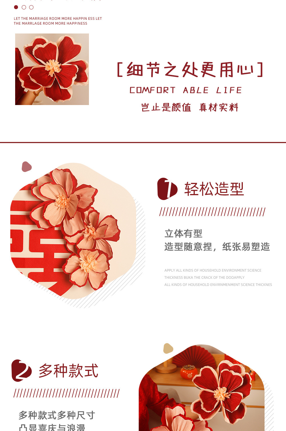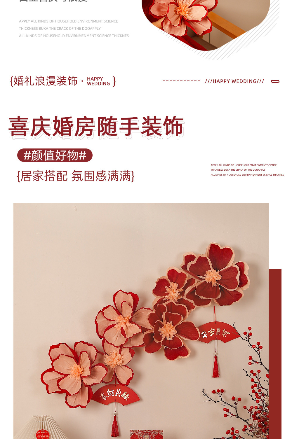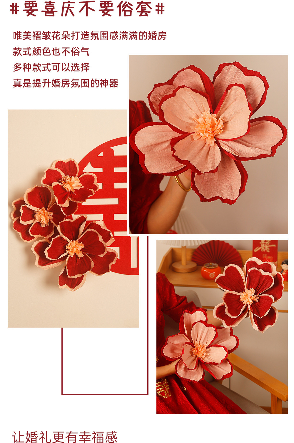 웨딩 룸 레이아웃 남성과 여성을위한 꽃 크레이프 종이 꽃 장식 웨딩 새 집 침대 옆 침실 배경 벽 세트