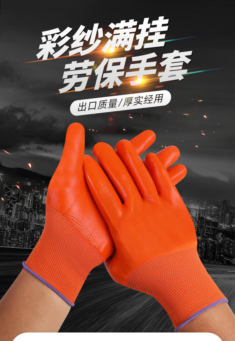 노동 장갑 공장 도매 방수 내마모성 풀 매달려 컬러 원사 사이트 소재 PVC 취급 건물 보호 장갑