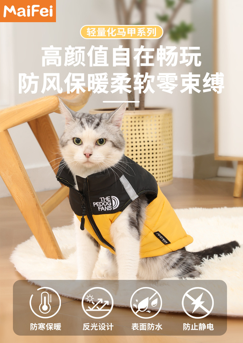 가을과 겨울 따뜻한 여행을위한 새로운 애완 동물 면화 패딩 옷 고양이 옷 두껍게 개 조끼 애완 동물 조끼 도매