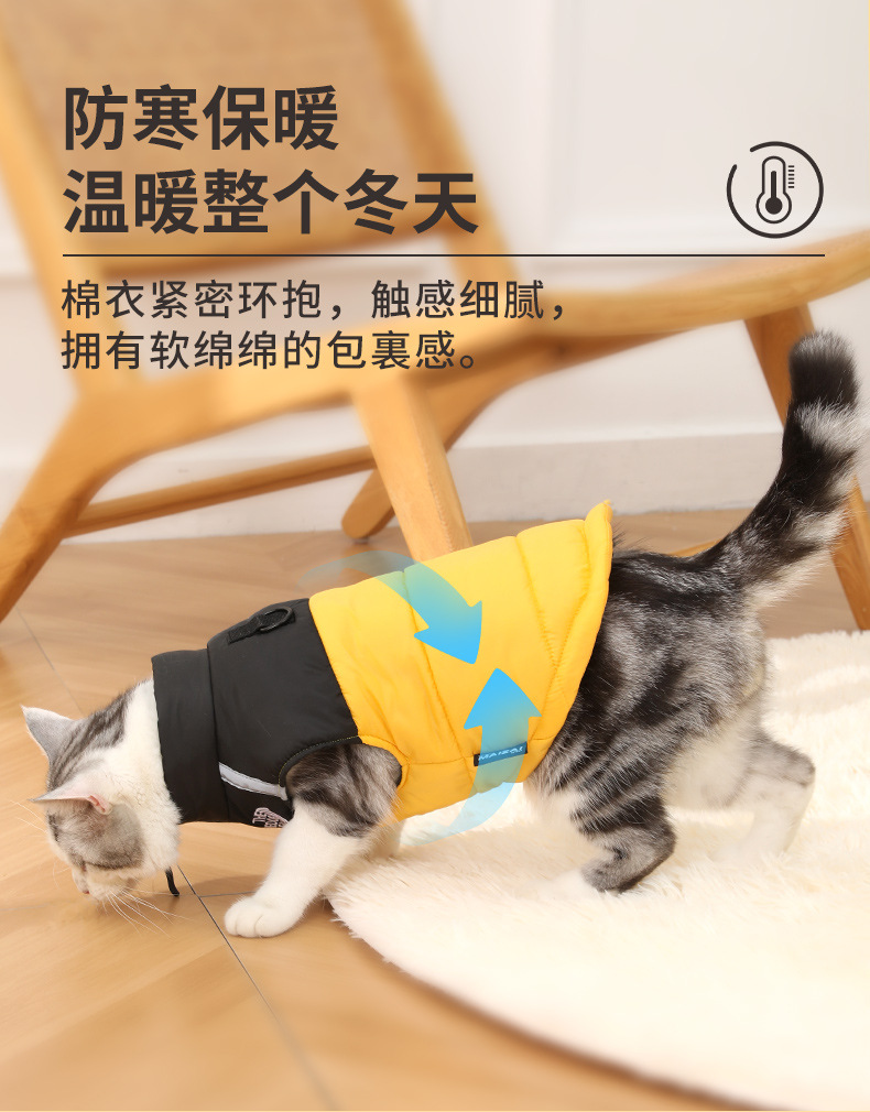 가을과 겨울 따뜻한 여행을위한 새로운 애완 동물 면화 패딩 옷 고양이 옷 두껍게 개 조끼 애완 동물 조끼 도매스토어 가기