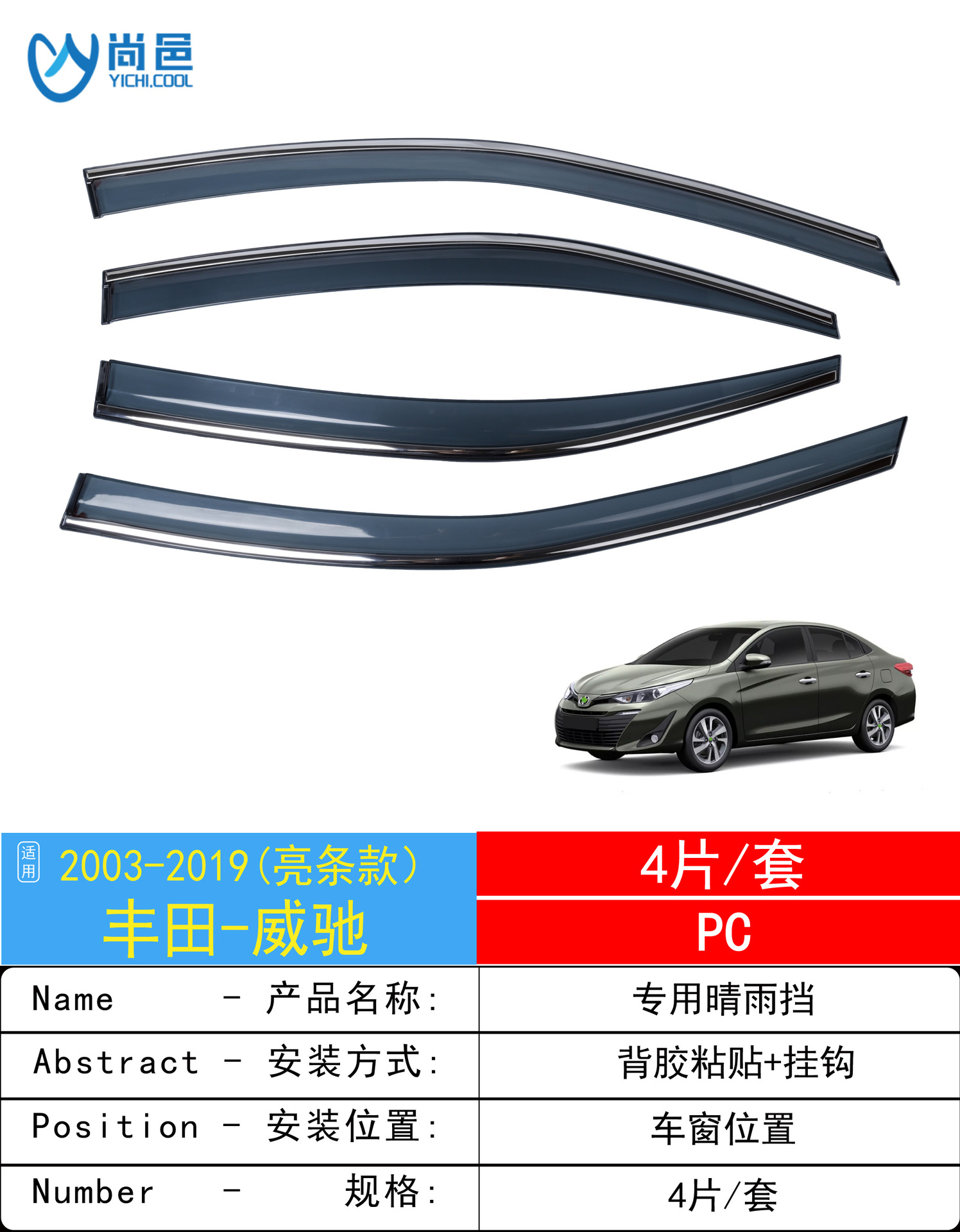 2003-2019 Toyota Vecchi Vios 창 비 방지 아크릴 자동차 비 방패의 국경 간 응용 프로그램