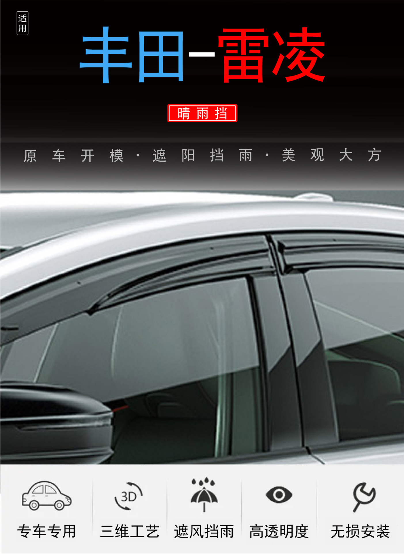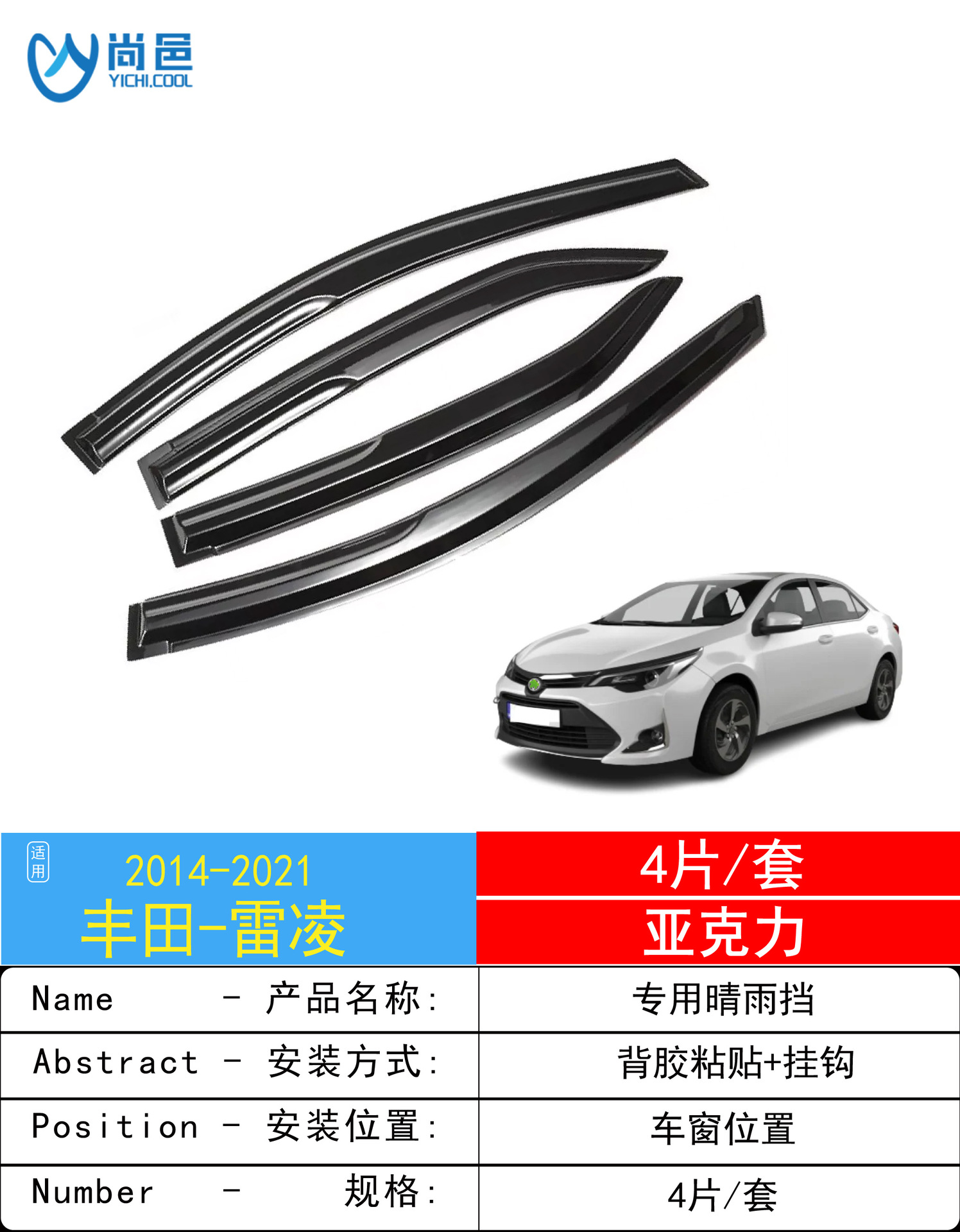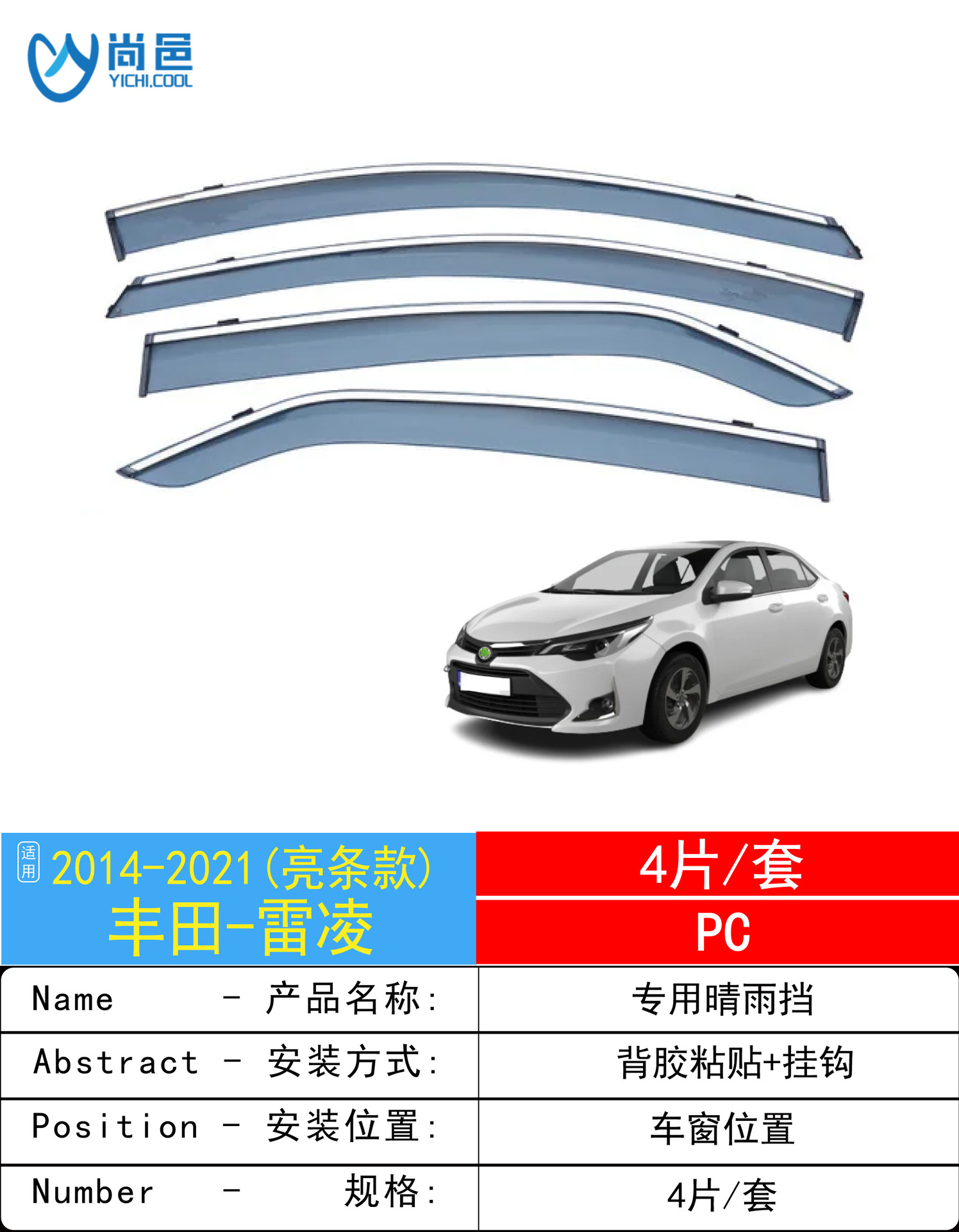 2014-2021 Toyota Lei Ling LEVIN 창 보호 방비 접착 자동차 레인 쉴드의 국경 간 적용