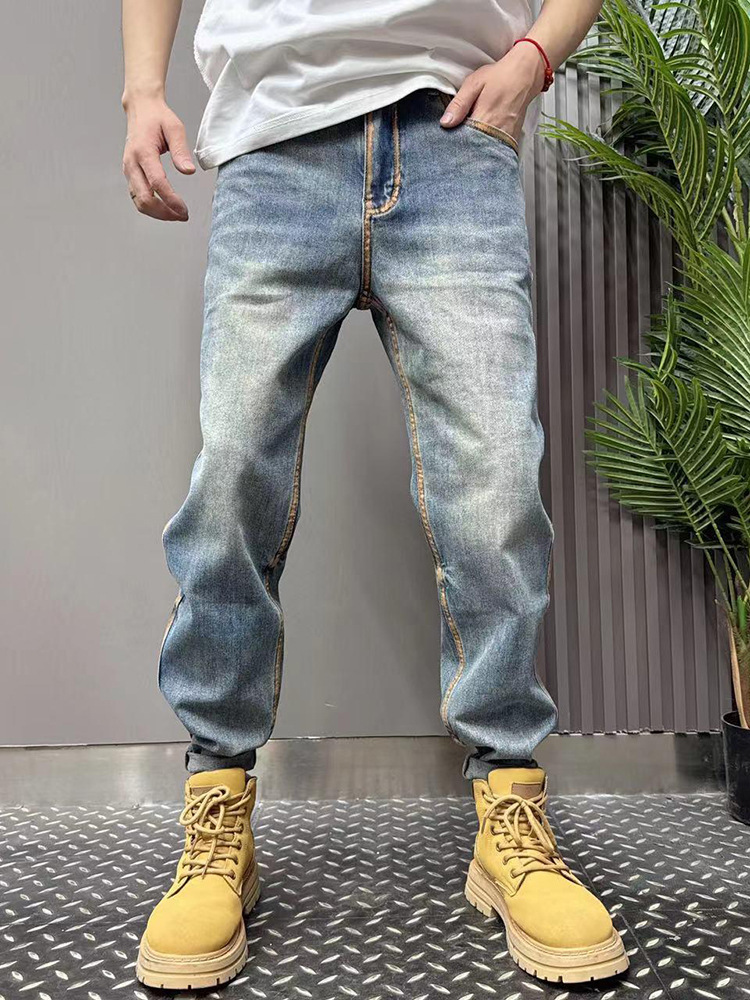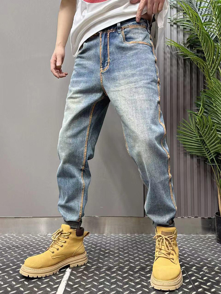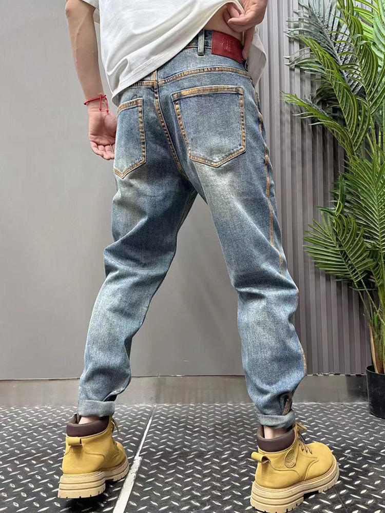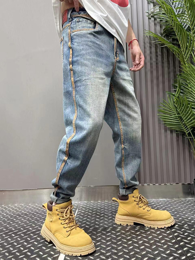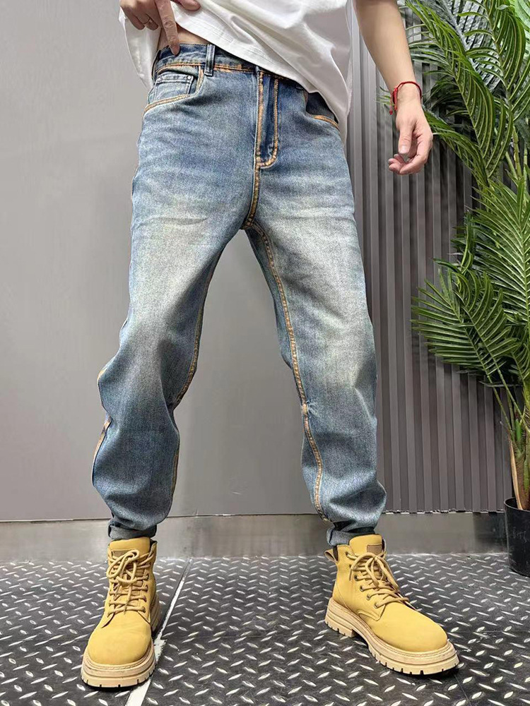 2024 여름 얇은 청바지 남성용 트렌디 브랜드 바지 젊은 바지 남성용 슬림 핏 데님 스키니 팬츠 트렌디스토어 가기