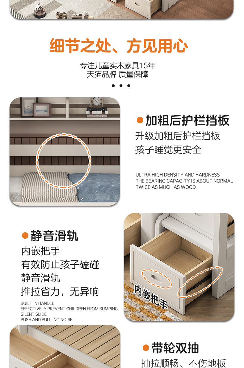 • 더블 사다리 하이박스 모델에는 상부 및 하부 매트리스가 함께 제공됩니다. [업그레이드된 하부 침대 상자]