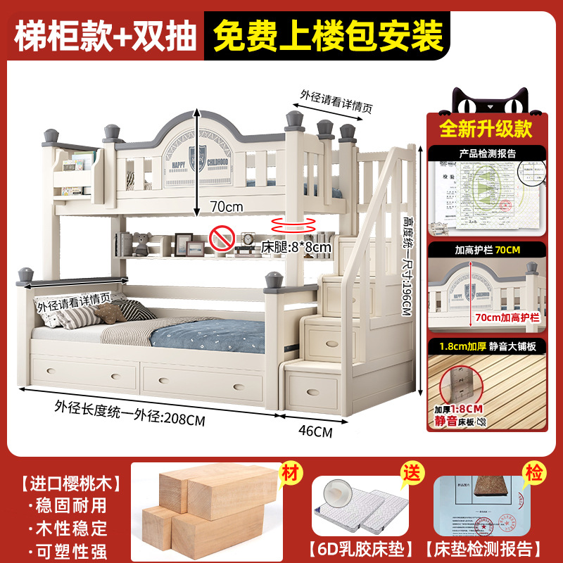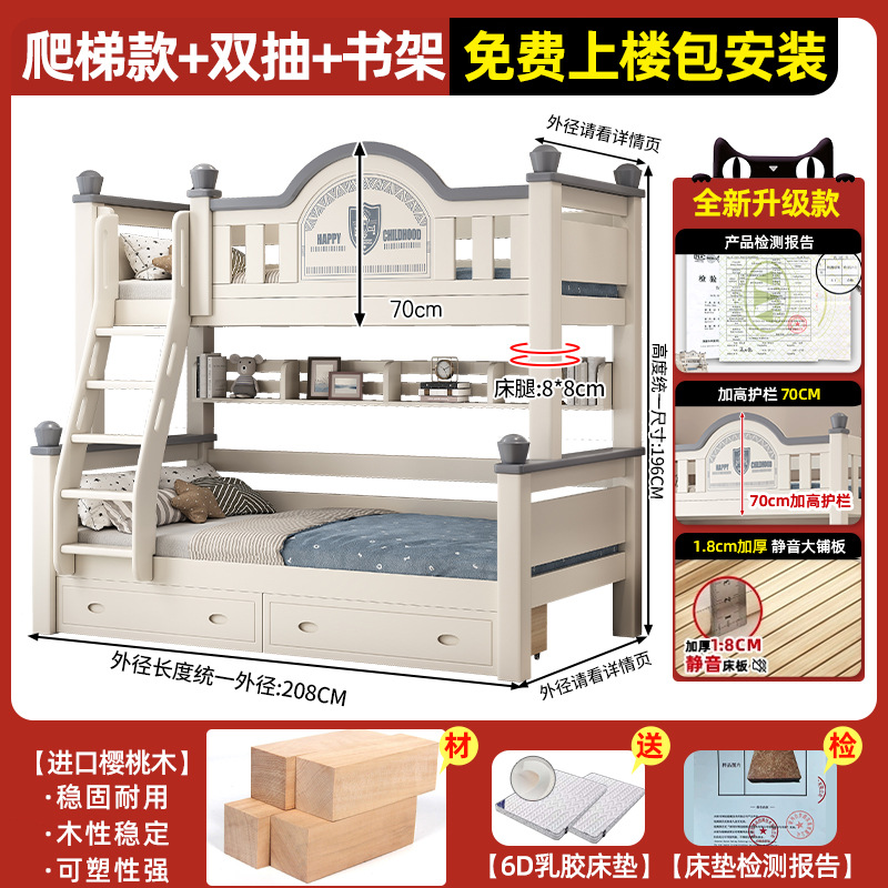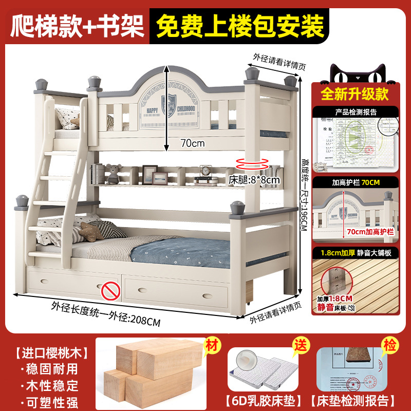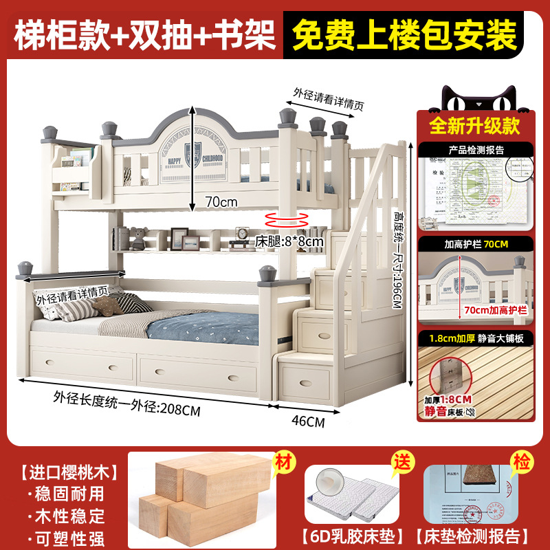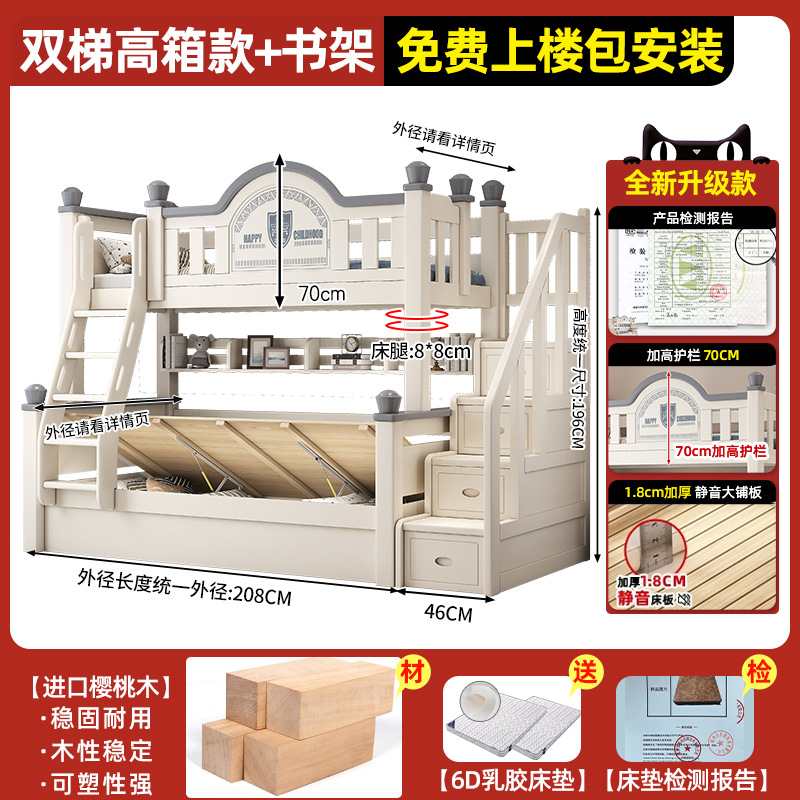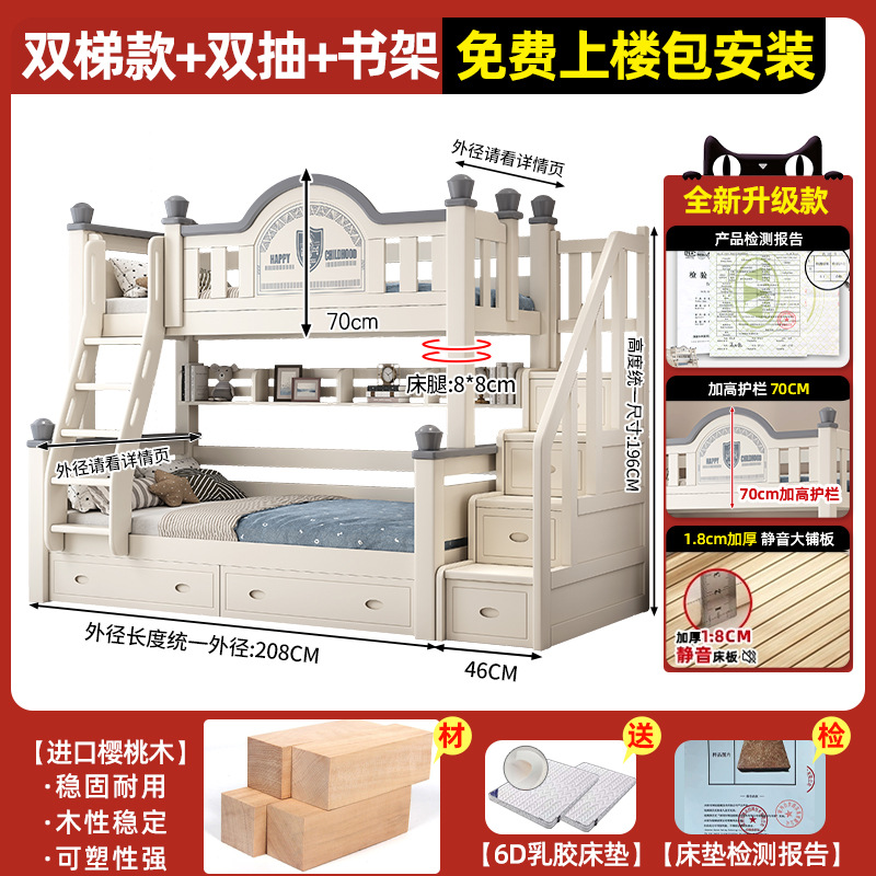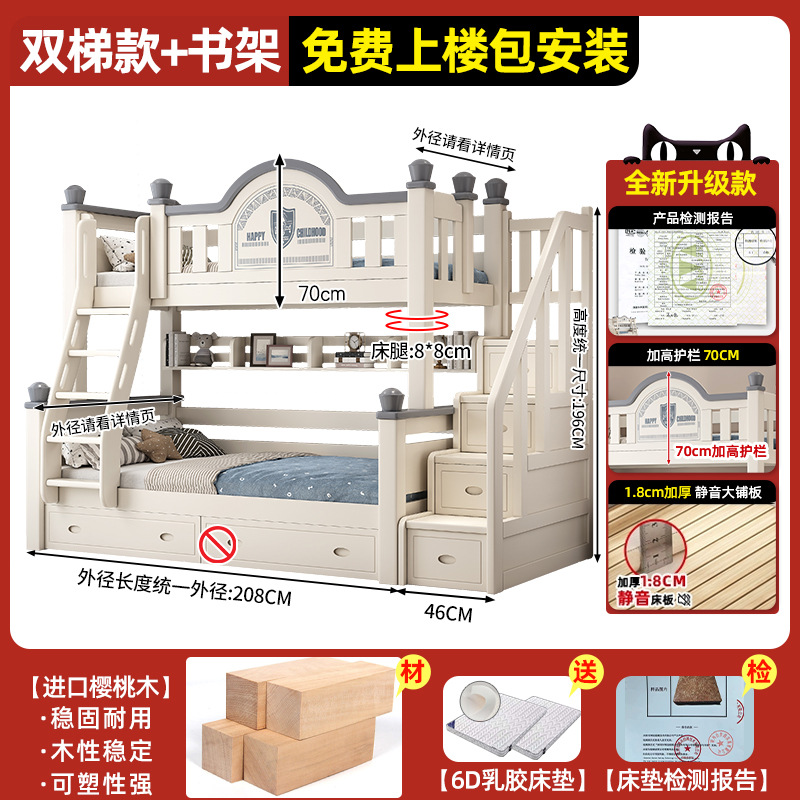 • 이중 사다리 모델 + 책장 + 이중 서랍, 무료 상부 및 하부 매트리스 [임산부 및 유아용 환경 친화적]