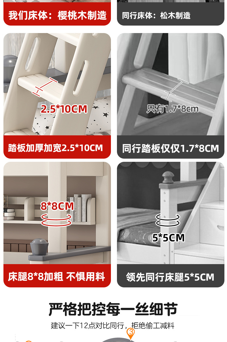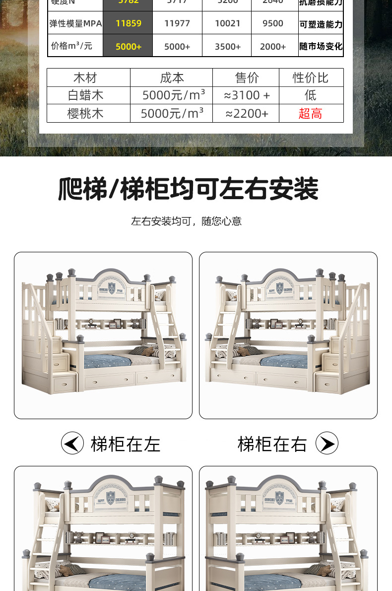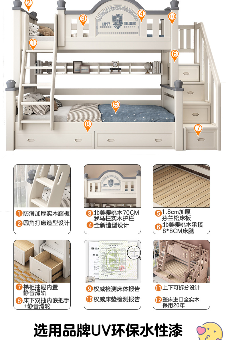 • 사다리 모델에는 상부 및 하부 매트리스가 함께 제공됩니다. [모두 원목, 베니어 없음]