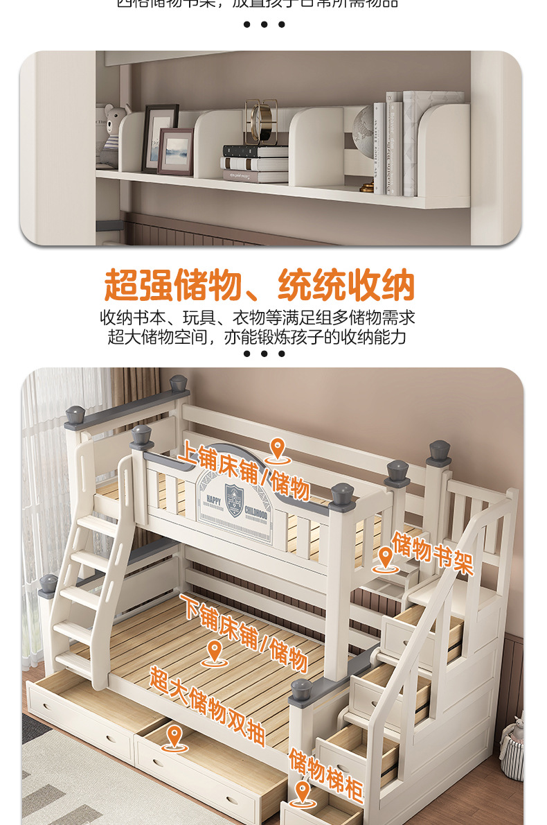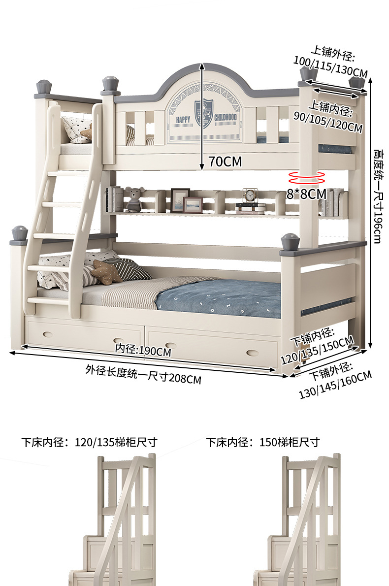 • 사다리 캐비닛 모델에는 상부 및 하부 매트리스가 함께 제공됩니다. [상부 침대에는 수납 선반 포함]