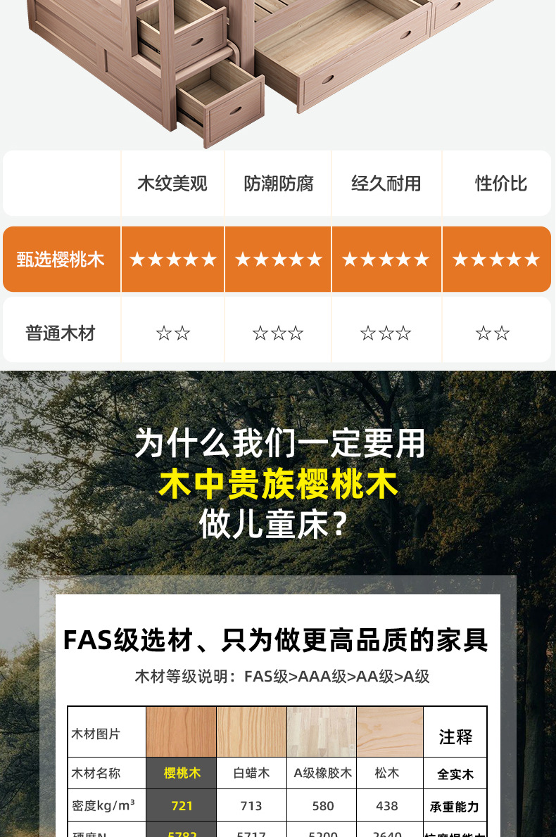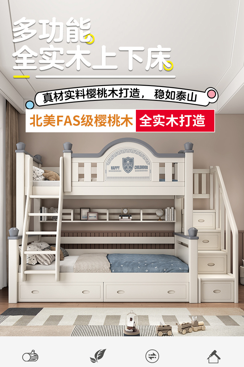 • 사다리 모형 + 책장에는 상하 매트리스가 포함되어 있습니다. [북미 FAS 등급 벚나무]