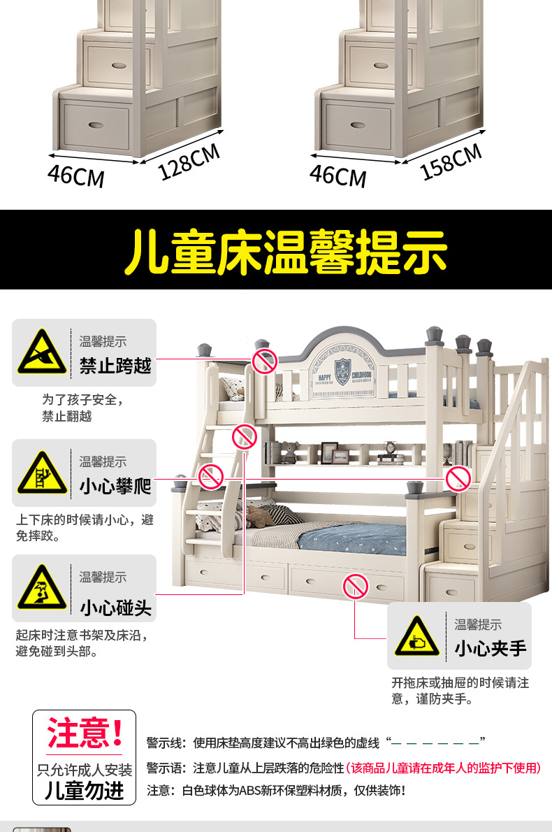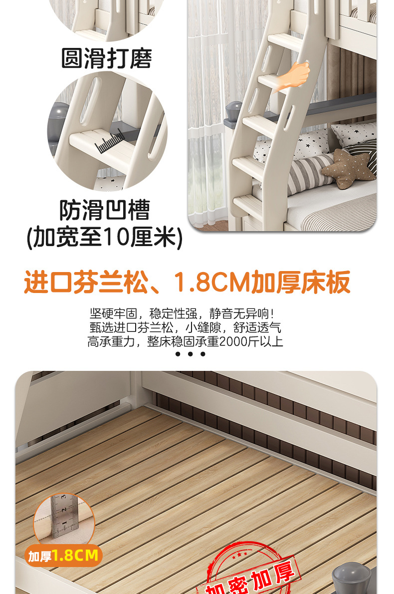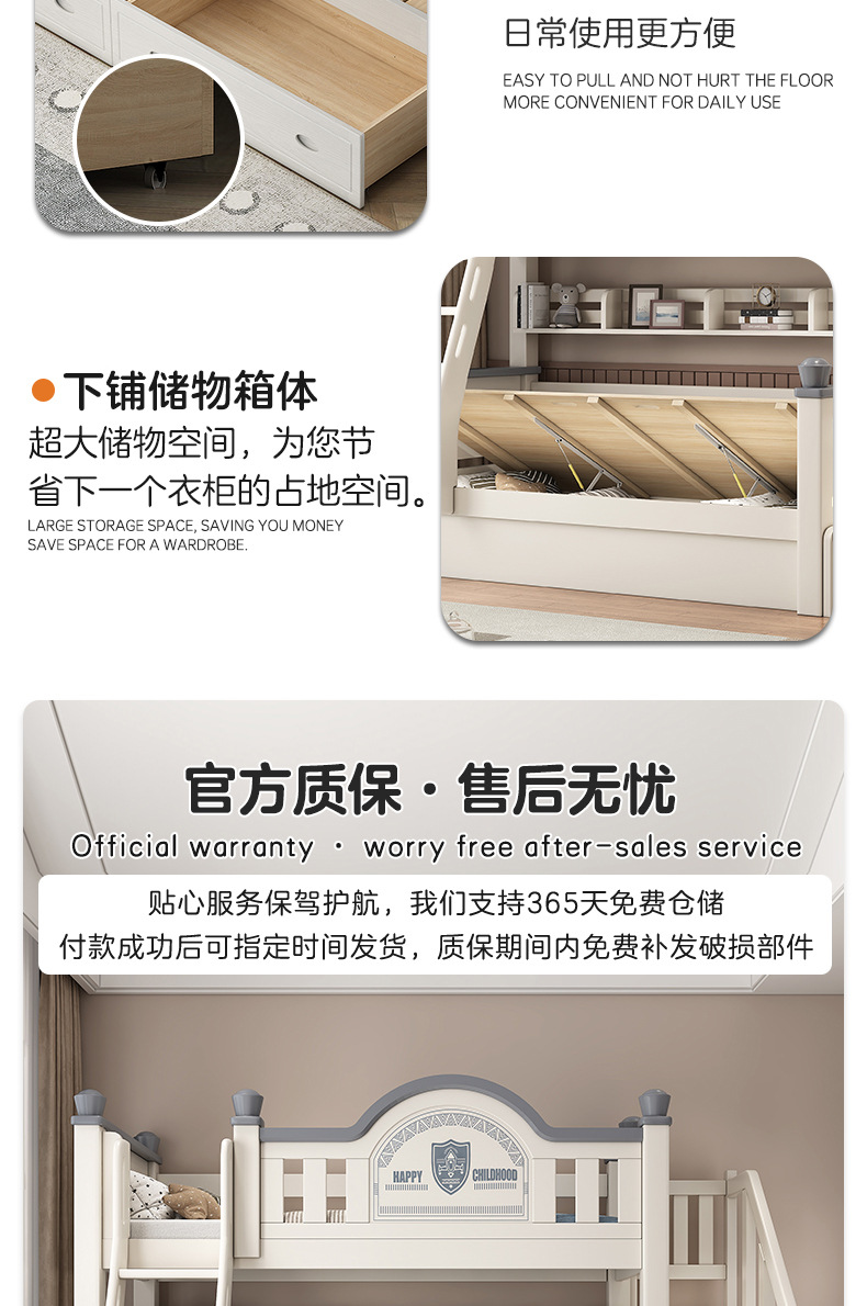 • 사다리 캐비닛 하이 박스 모델에는 상부 및 하부 매트리스가 함께 제공됩니다. [업그레이드된 하부 침대 상자]