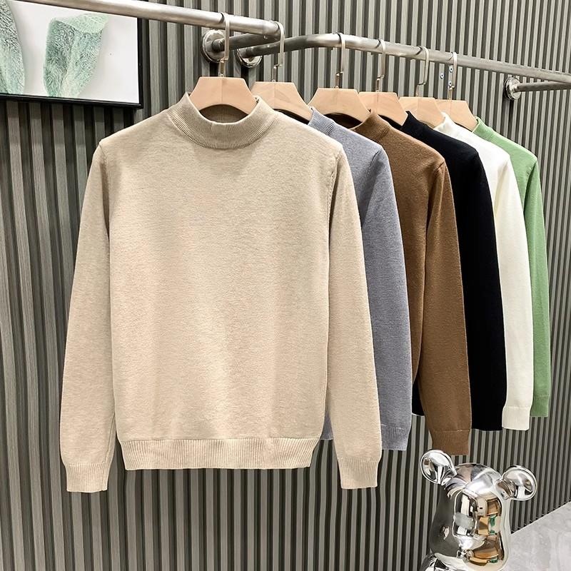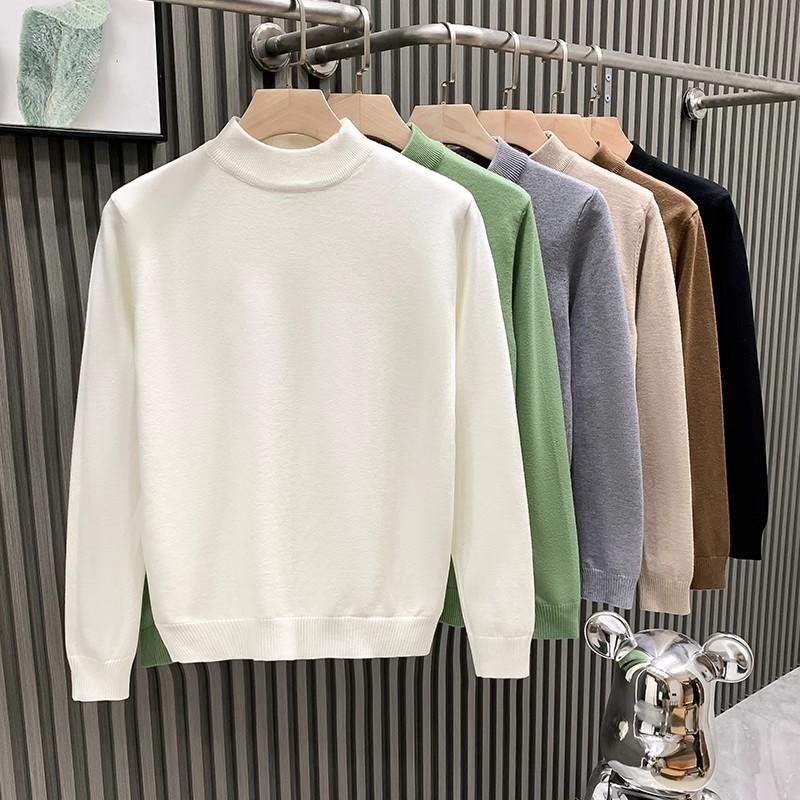 유럽 패션 브랜드 하프 터틀넥 스웨터 2024 년 가을 및 겨울 남성 신규 엔트리 럭셔리 니트 스웨터 고급 센스 폭발성 베이스 셔츠스토어 가기