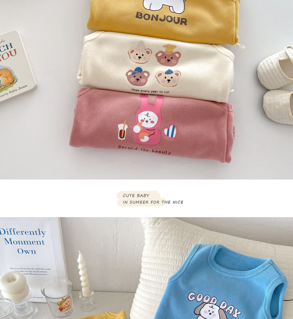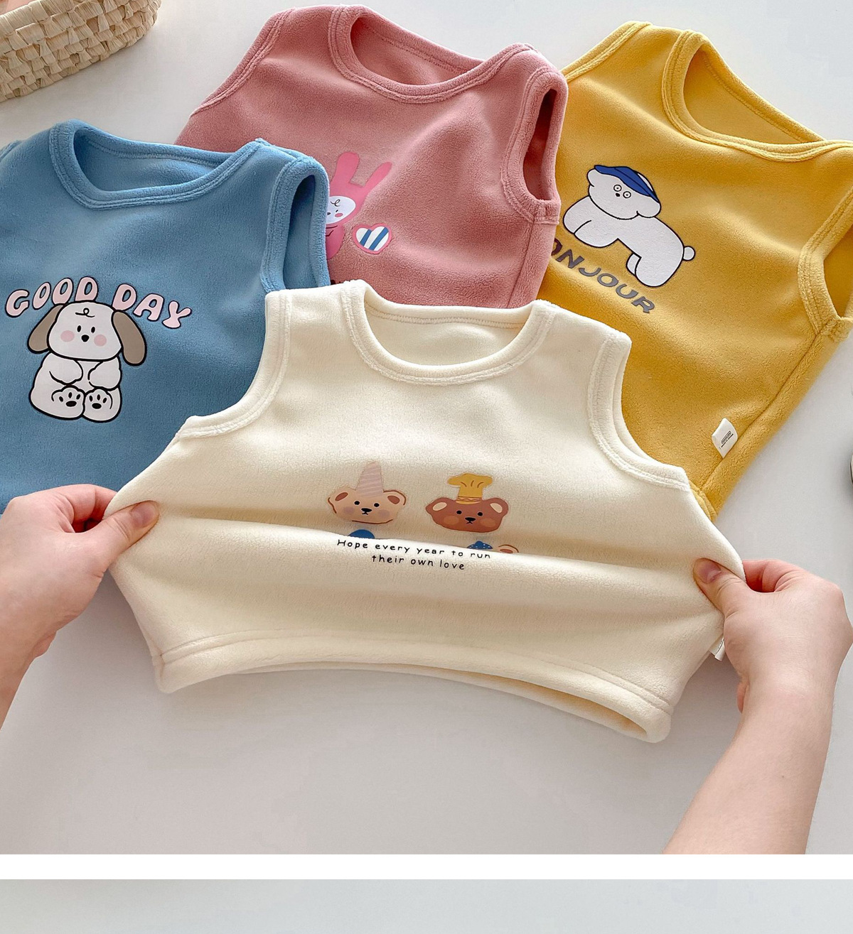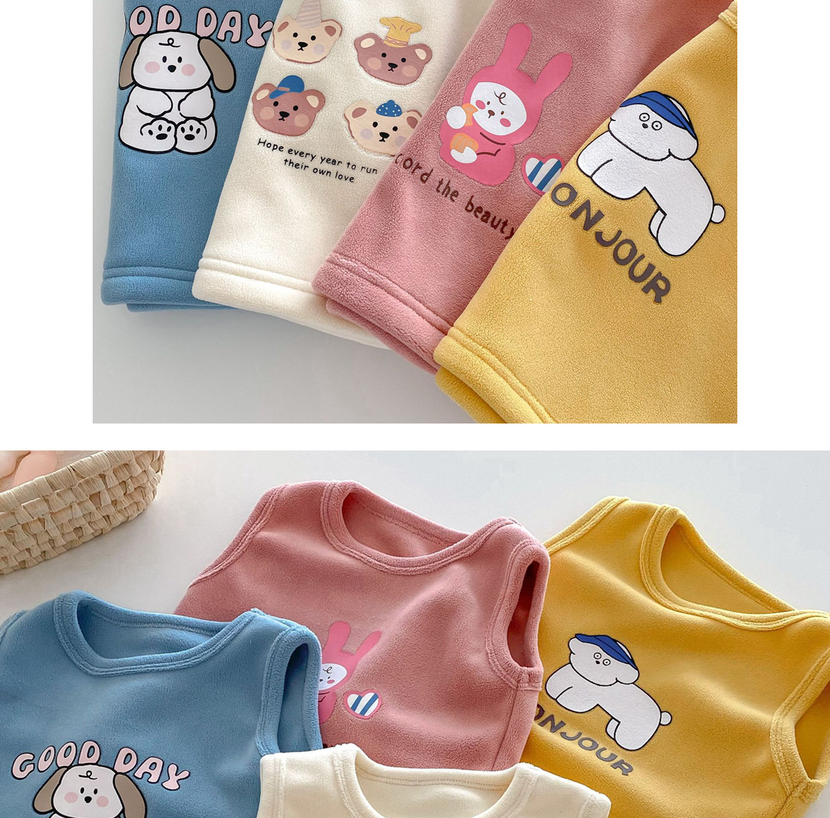 어린이 조끼 0-5 세 겨울 한국 스타일 아동복 소녀 귀여운 만화 톱 소년의 두꺼운 조끼 서양식스토어 가기